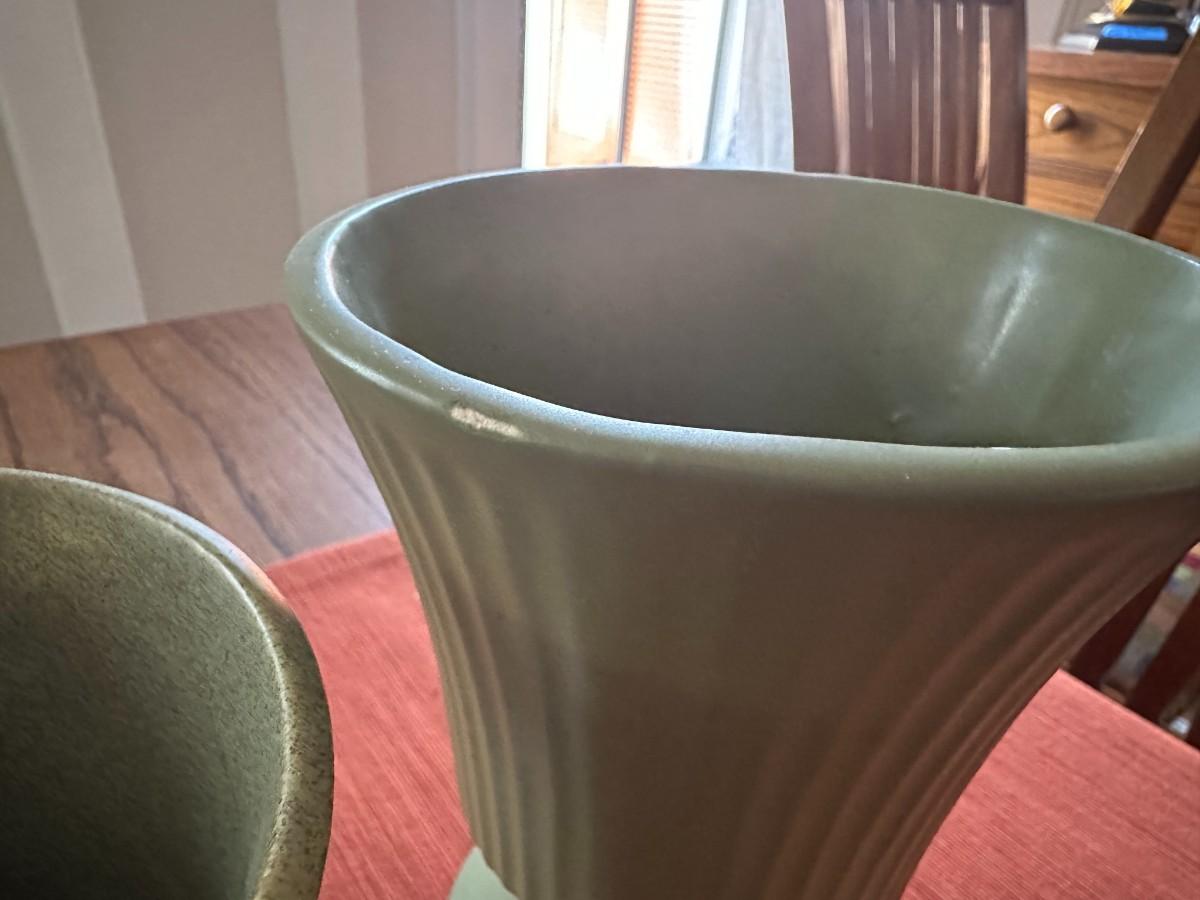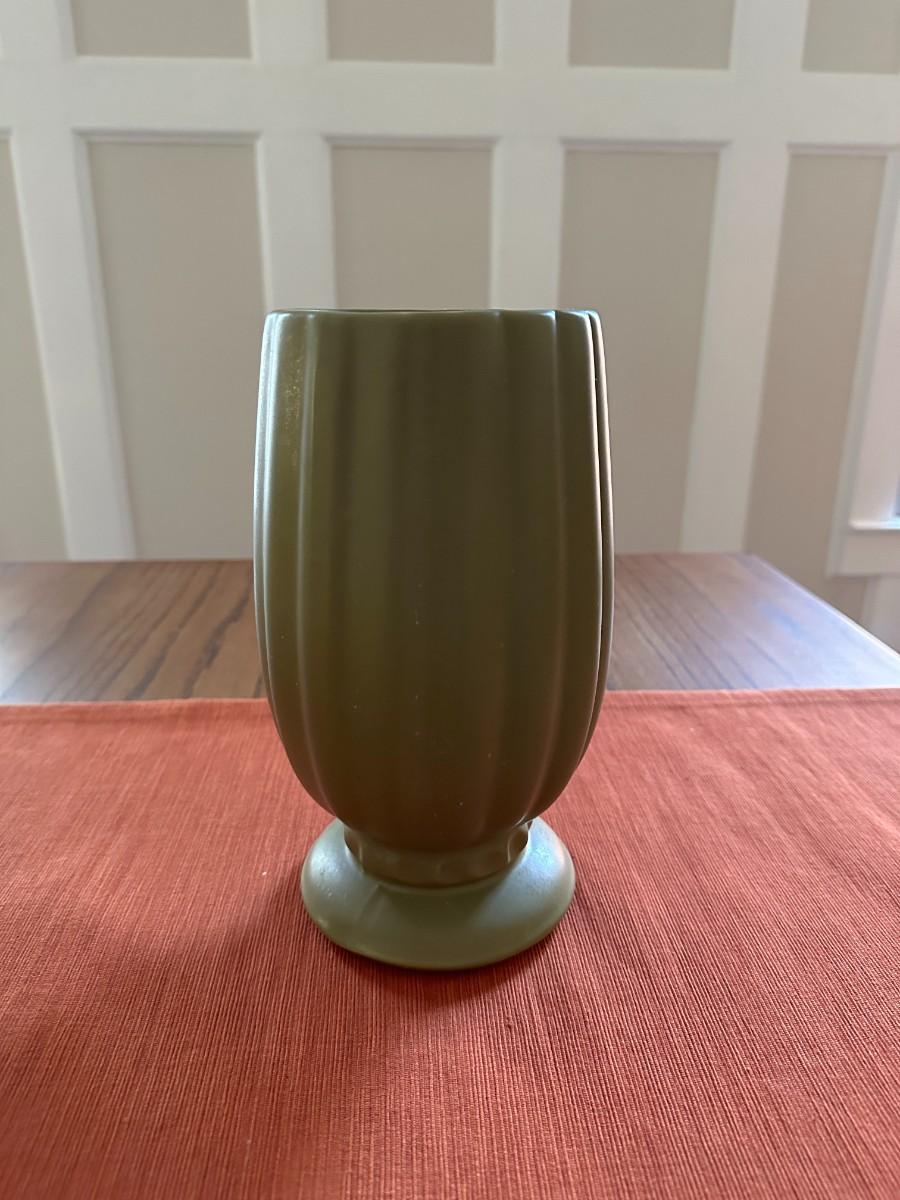 Green Vase Assortment: 5 Floraline, 1 Haeger, 1 Hull, 1 USA, Range from 9.5"h to 3.5"h