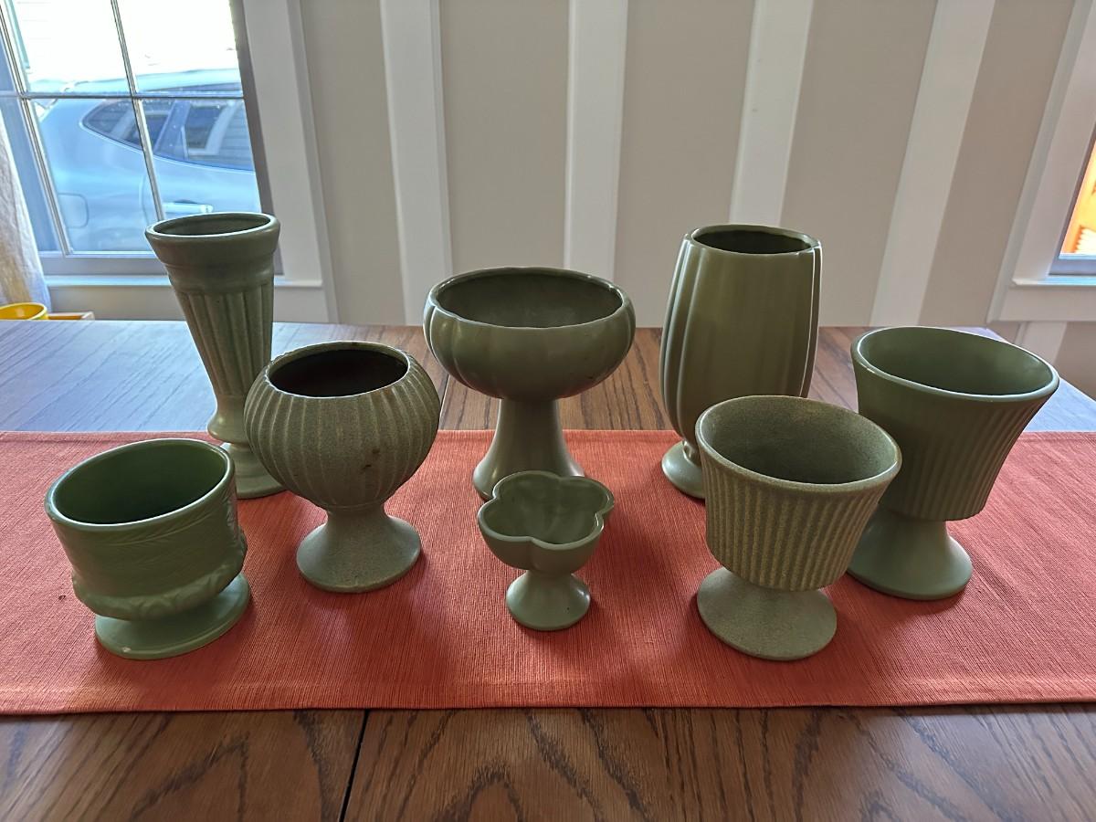 8 pc Vase Asst. Hull, Haeger, Floraline, USA - Green