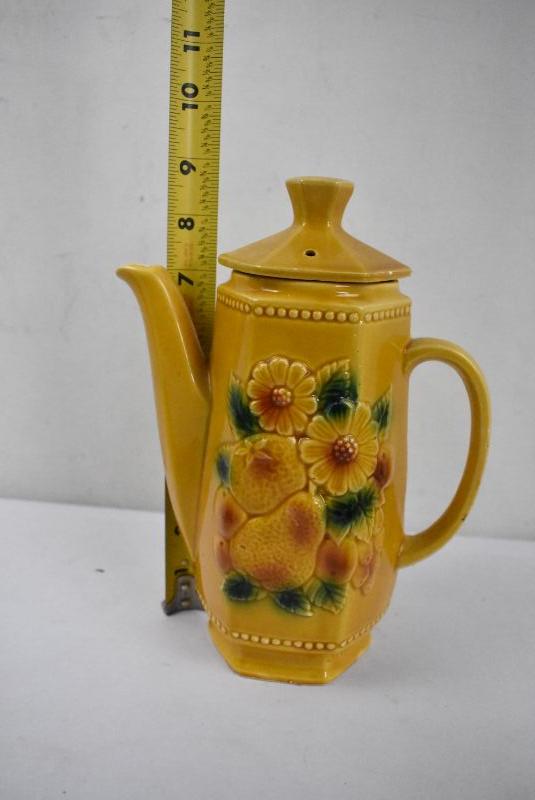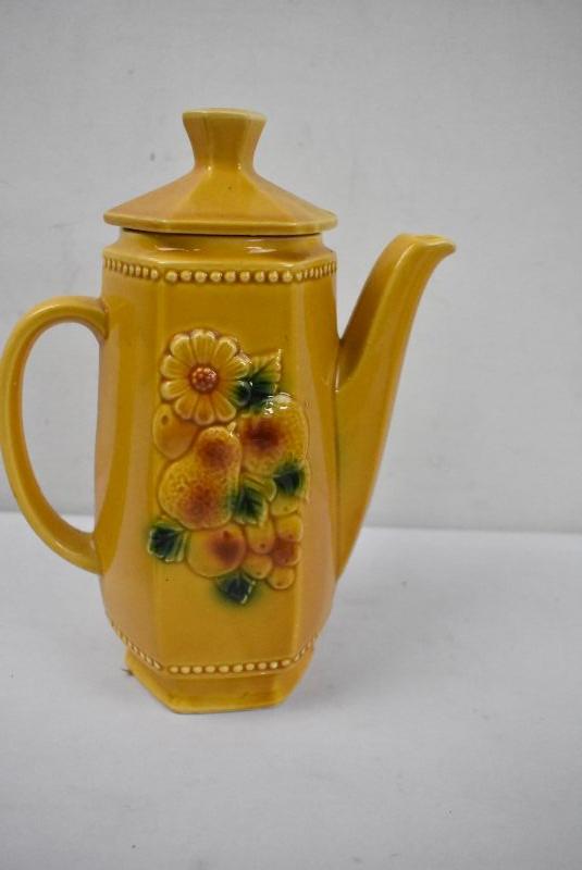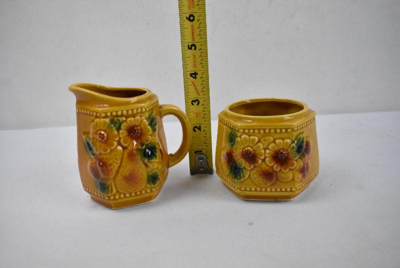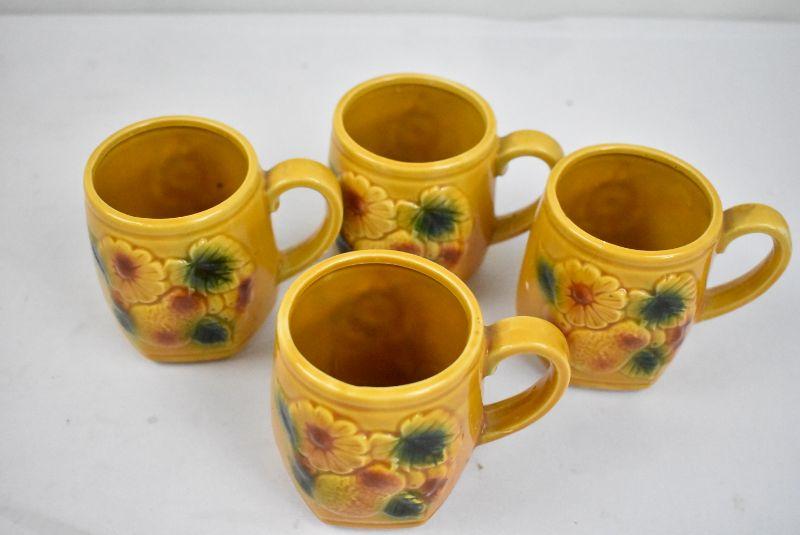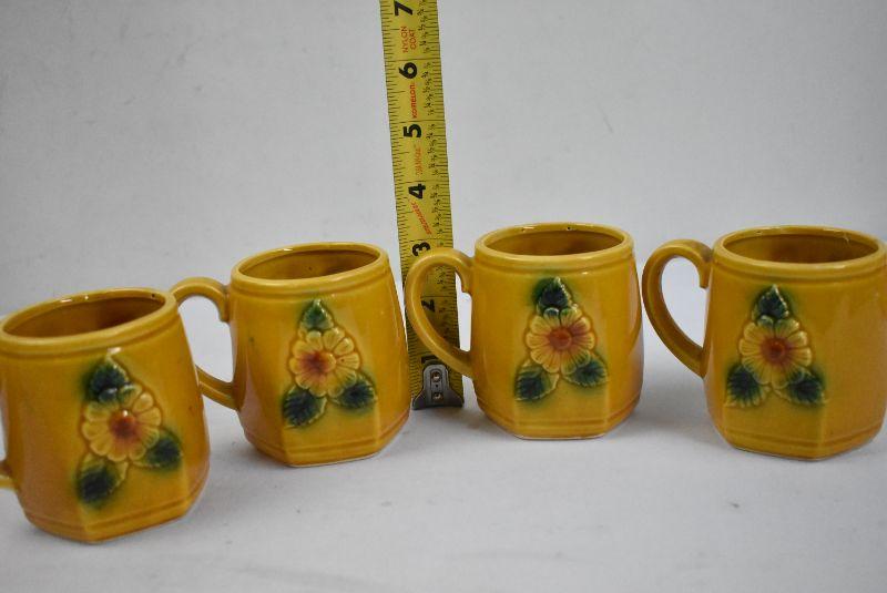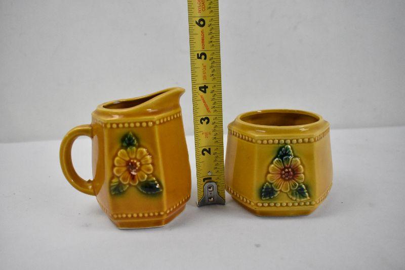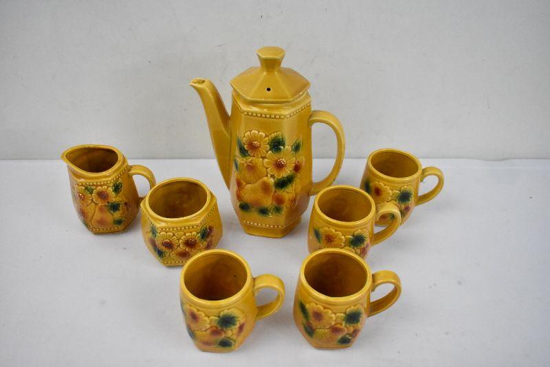 8 Pc Yellow Floral Coffee/Tea Set: Pitcher, Creamer, Sugar, 4 Cups (1 Repaired)