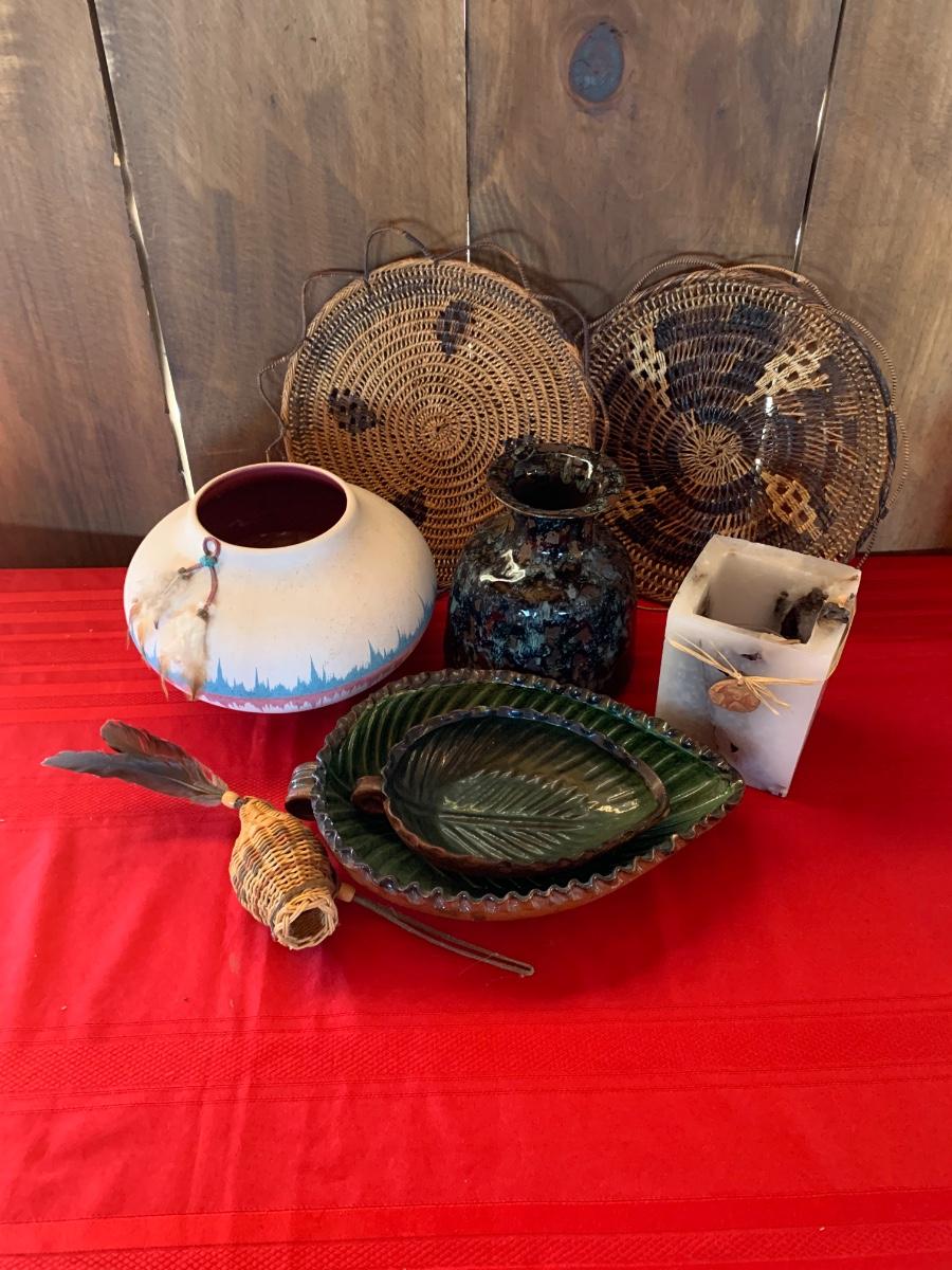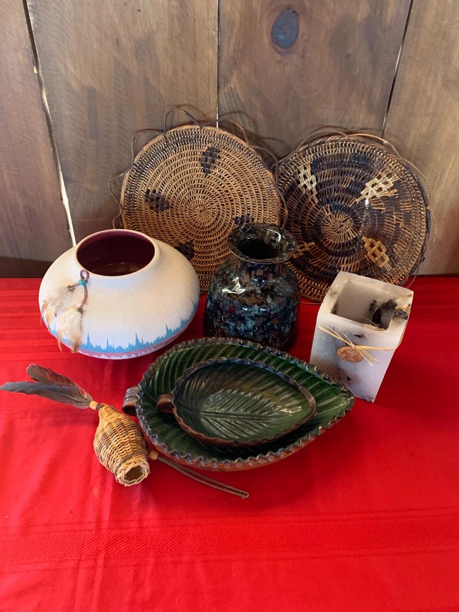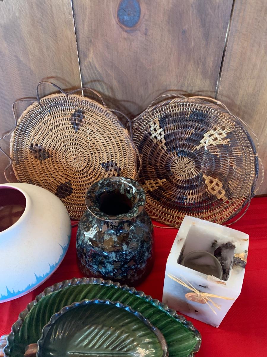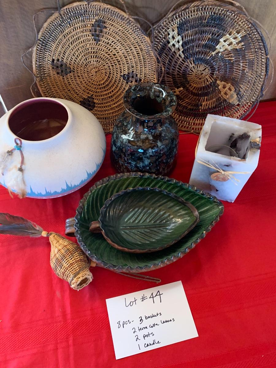 8 pcs lot “” 3 baskets, 2 terra cotta leaves, 2 pots, 1 candle