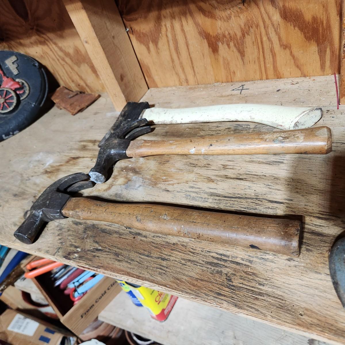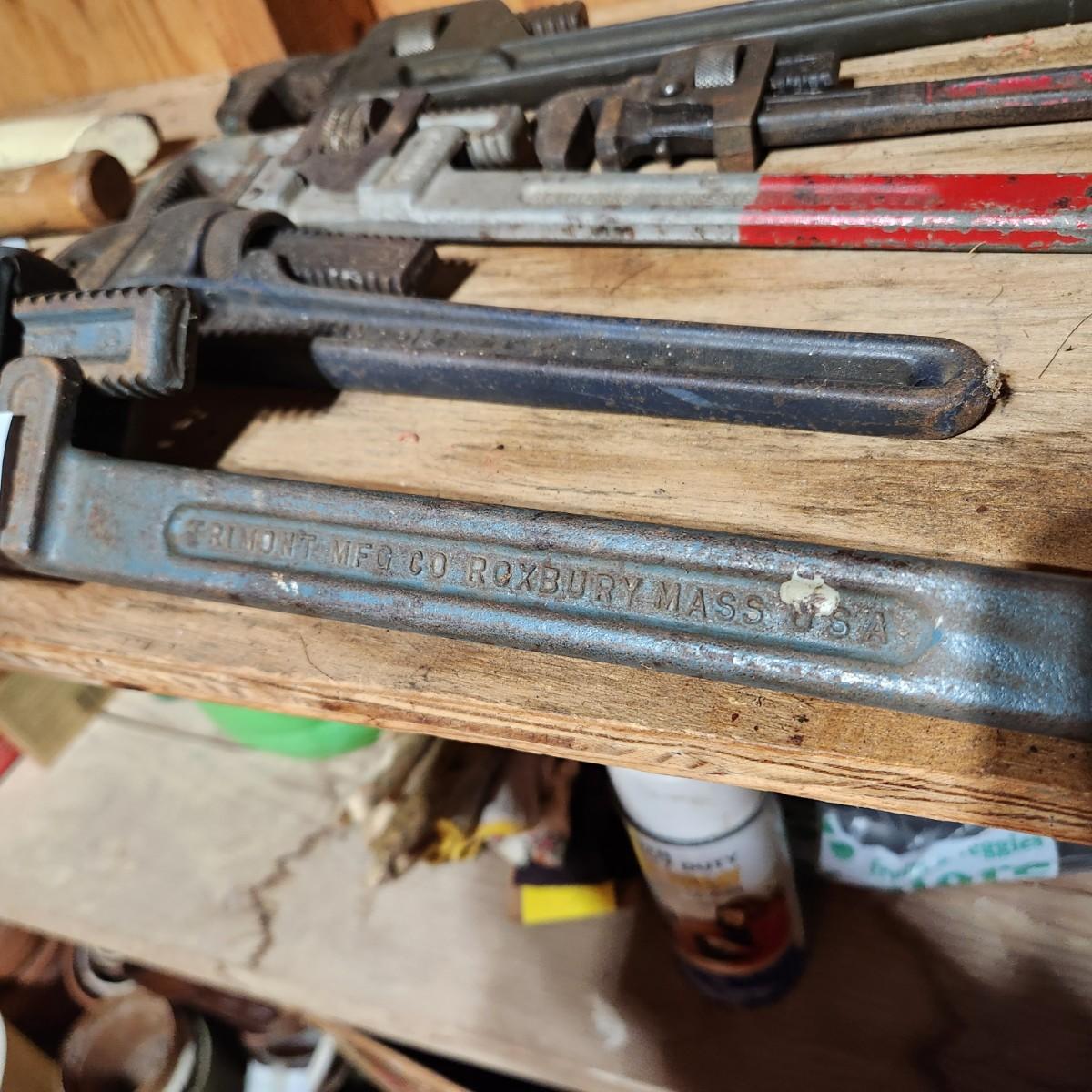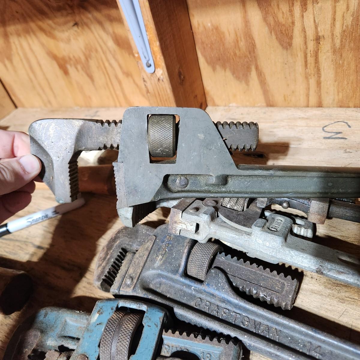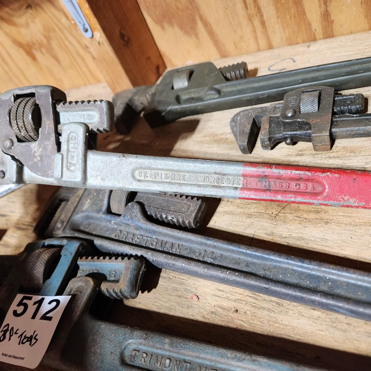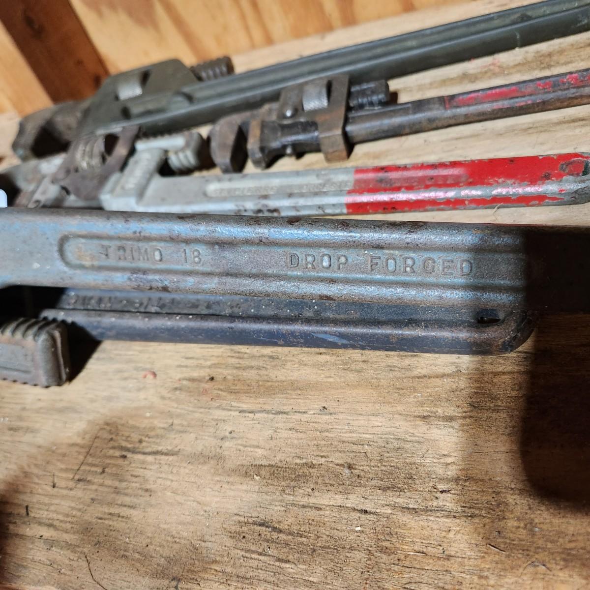 8 Pcs. Tool Lot Hammers, Axe, Pipe Wrenches
