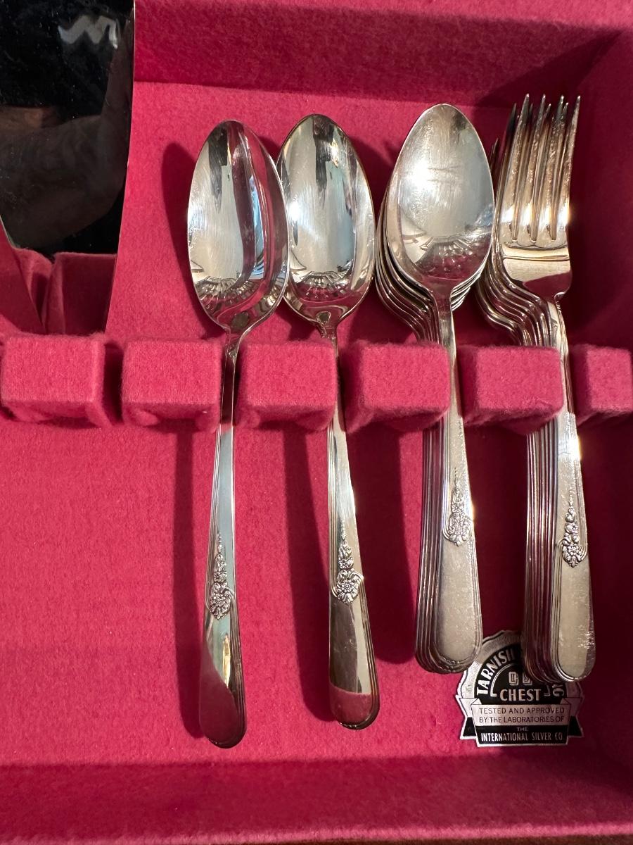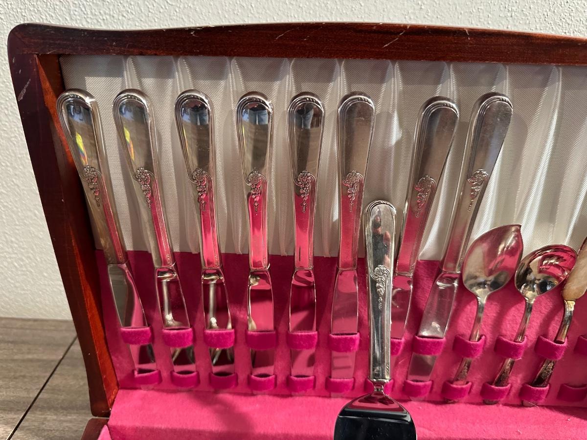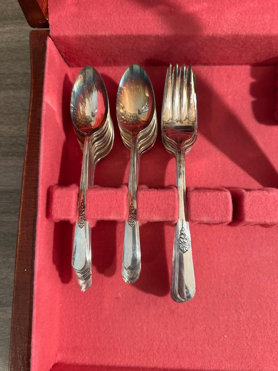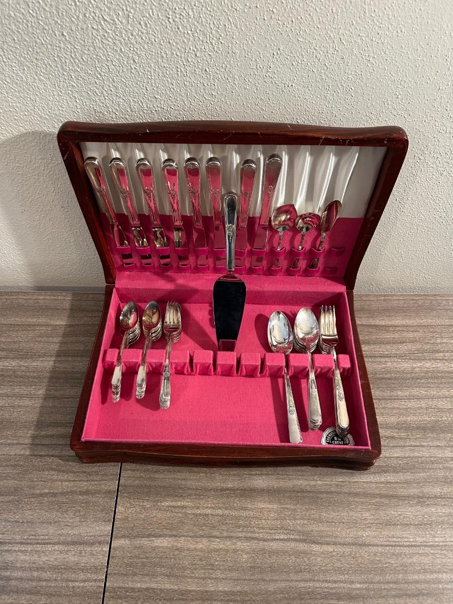 SILVER PLATED FLATWARE WITH CHEST 8 PLACE SETTING