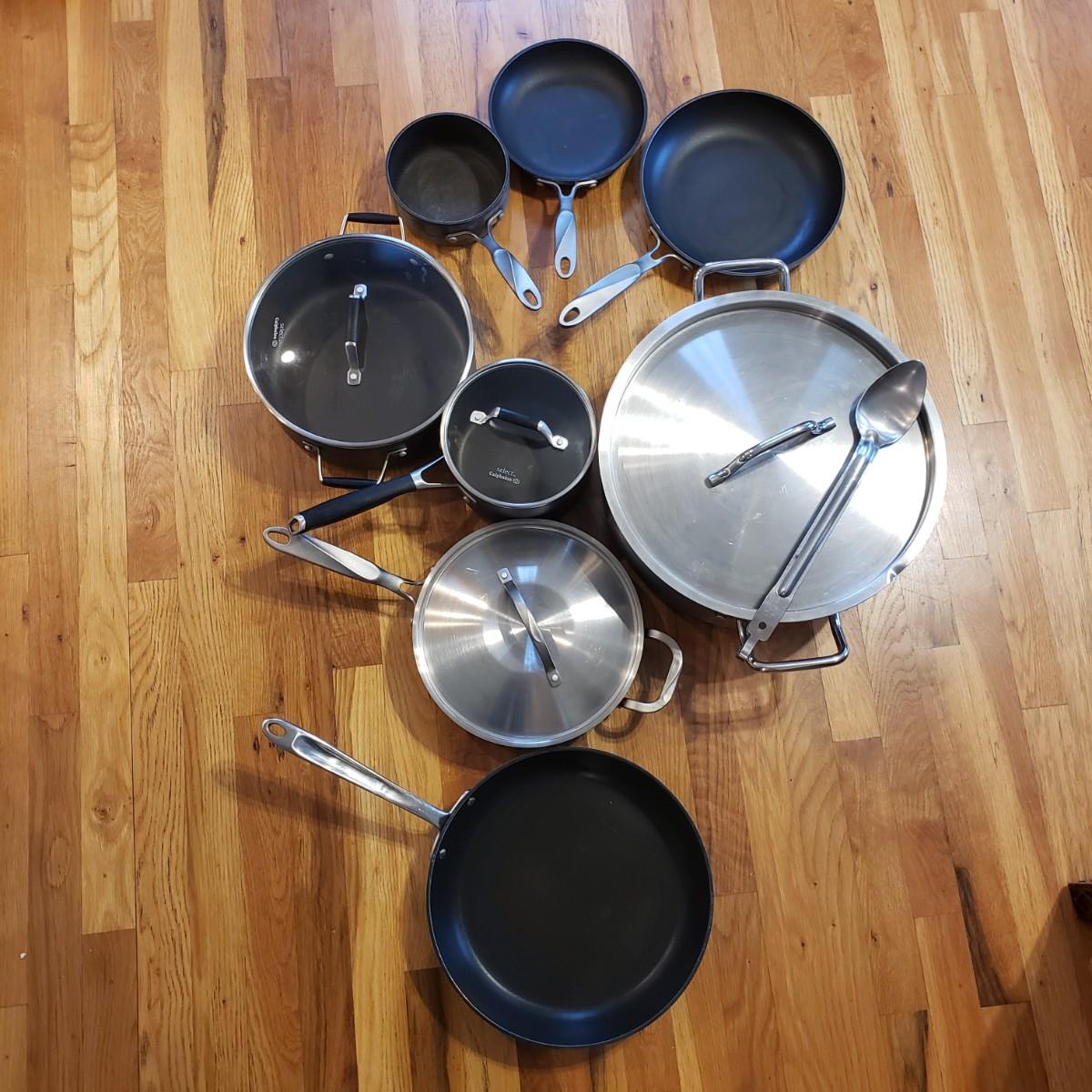 Eight Piece Calphalon, All-Clad and NSF Pots and Pans (K-KD)