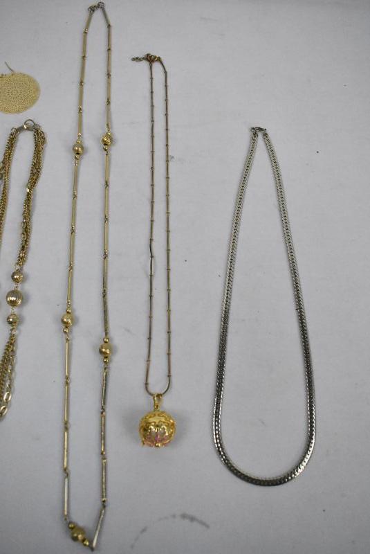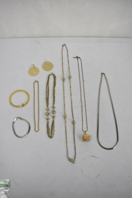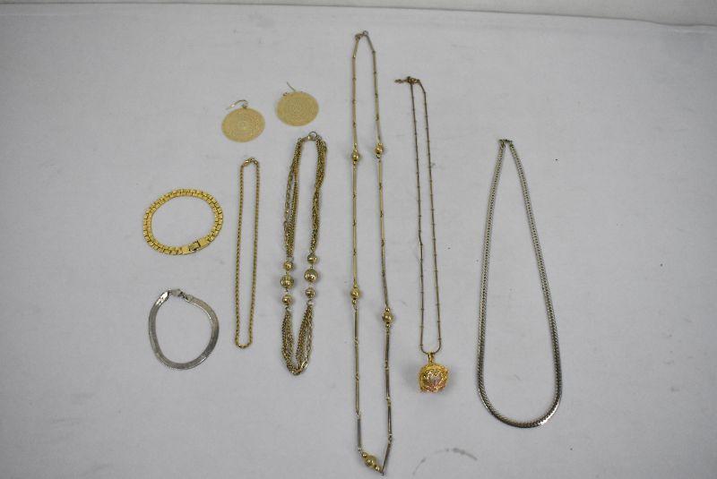 8 Piece Costume Jewelry Lot: 5 Necklaces, 2 Bracelets, and 1 Pair Earrings