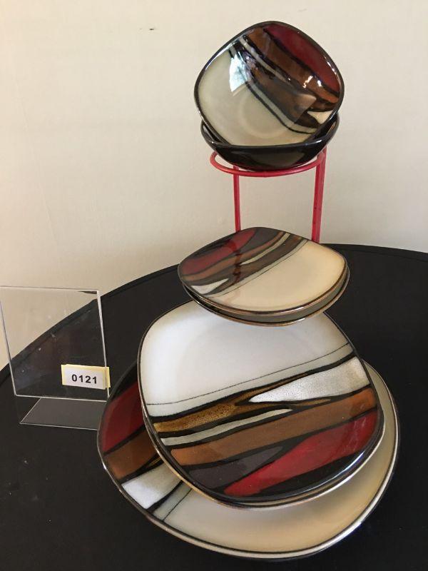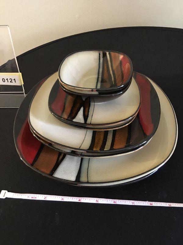 8 Piece Modern Elite Dinner Set. 2 ea of dinner plates, salad plates, 2 bowls, 2 saucers