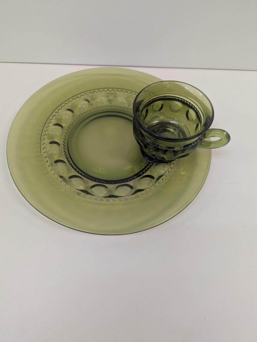 8 Piece Set Of Indiana Glass Kings Crown Thumbprint Snack Plate & Tea Cup #34