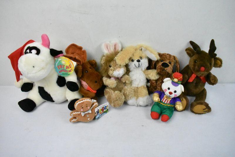 8 Piece Stuffed Animals Lot - Cow Sings, Talks, and Dances