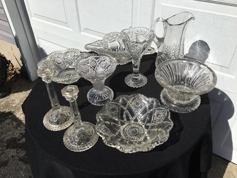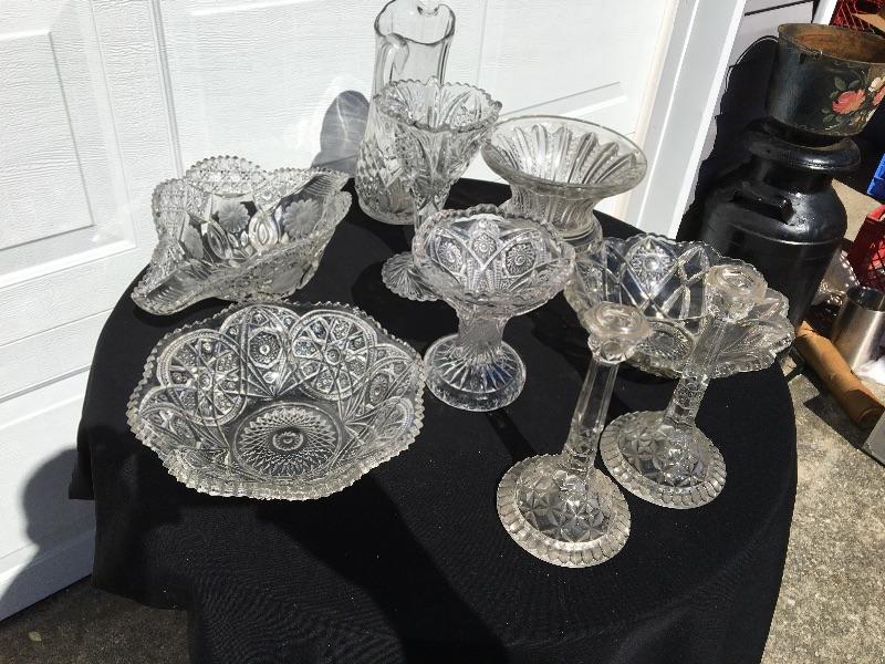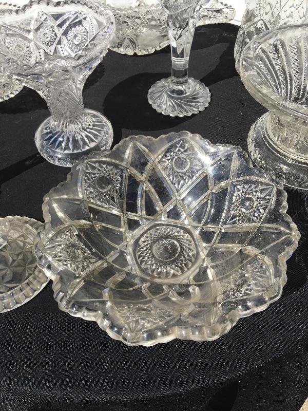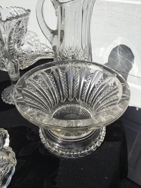 8+ piece vintage pressed glass collection with serving pieces