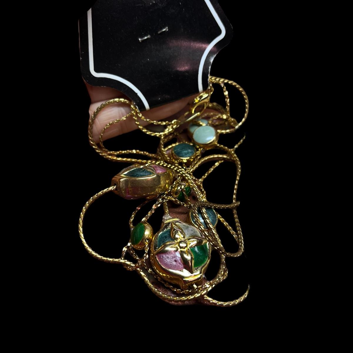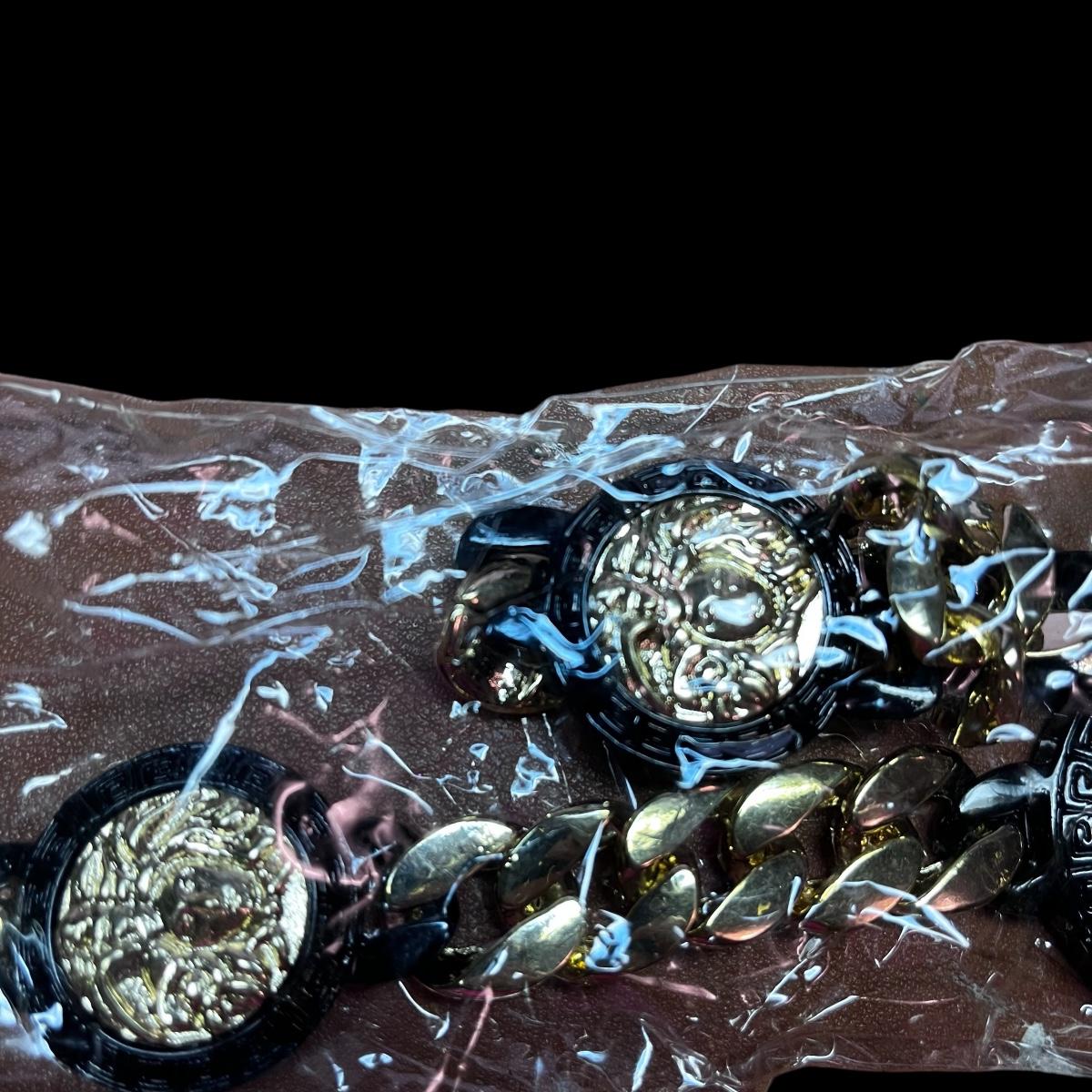 Gold-tone black Versace-style pendant necklace (chain link broken)