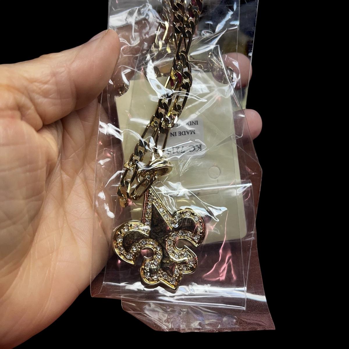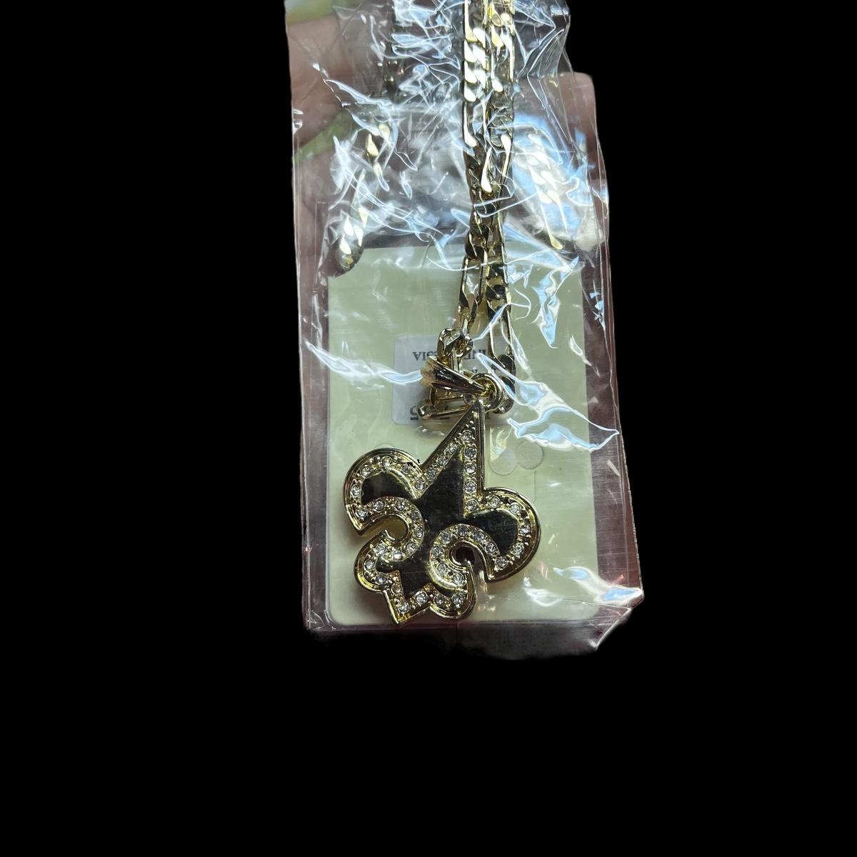 Two gold-tone fleur-de-lis necklaces (identical design)