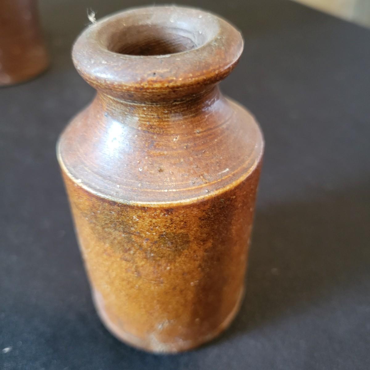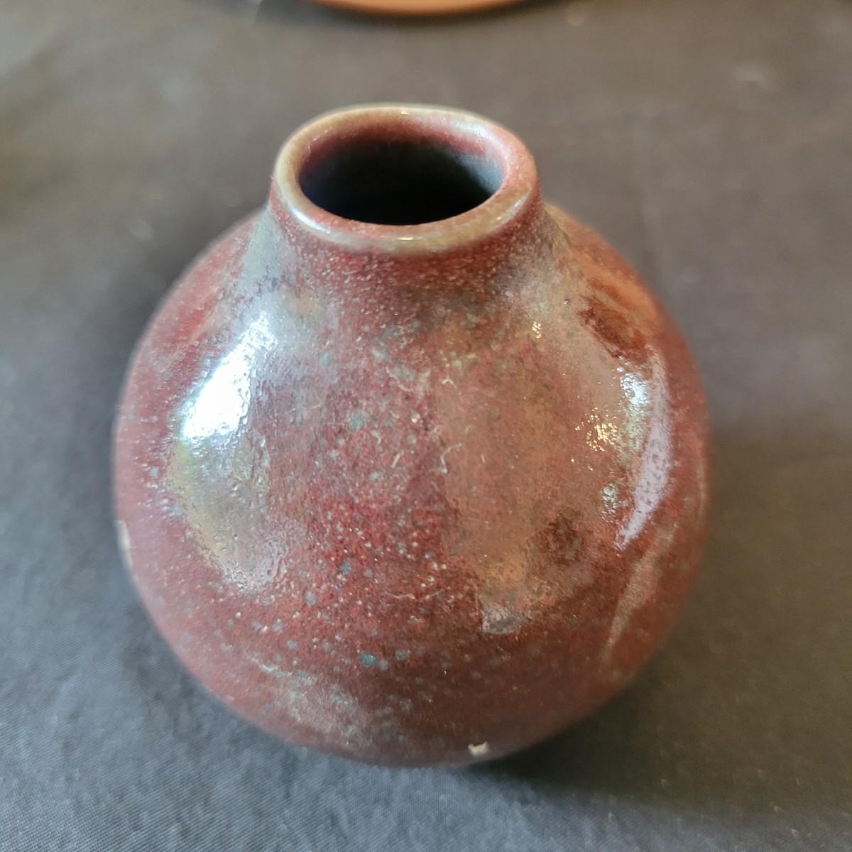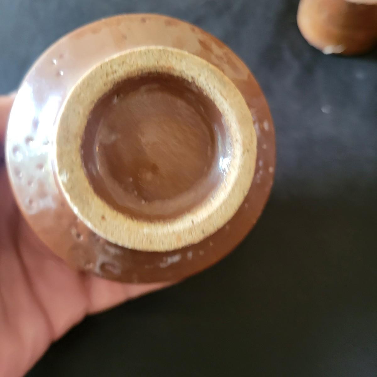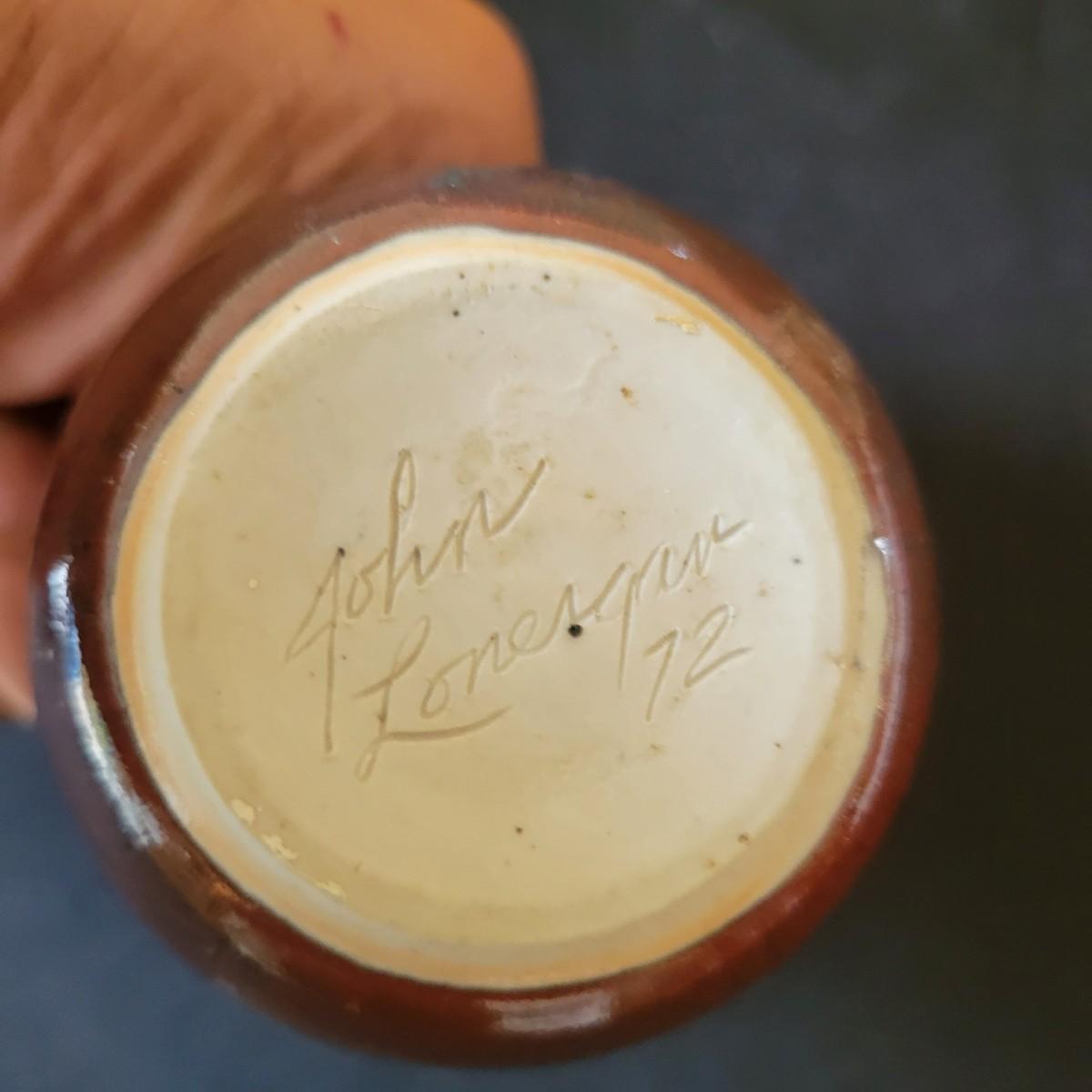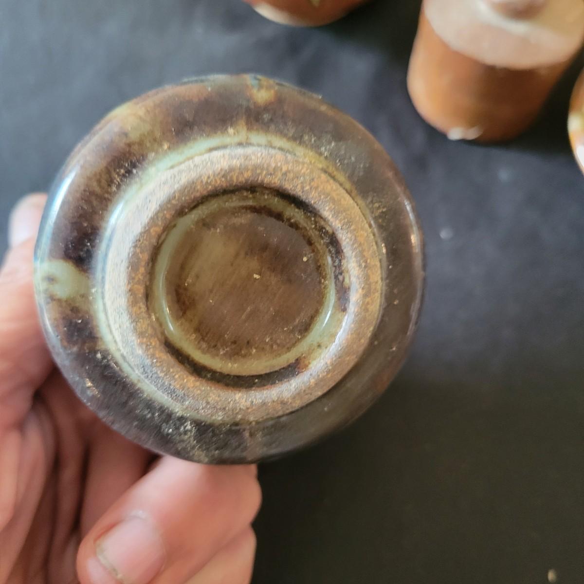 An assortment of glazed pottery pieces. No notable chips or damage on any of them. two cups, four jugs, a small saucer and a bowl. Bowl measures approximately 7.5" x 3" and has a textured interior. A few pieces are signed. Shipping available