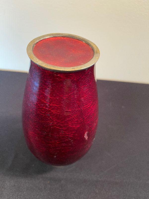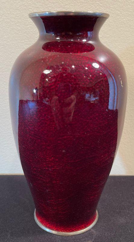 #8 Pigeons Blood Cloisonné  Enamel vase.