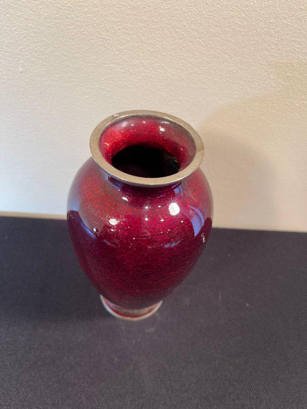 #8 Pigeons Blood Cloisonné Enamel vase.