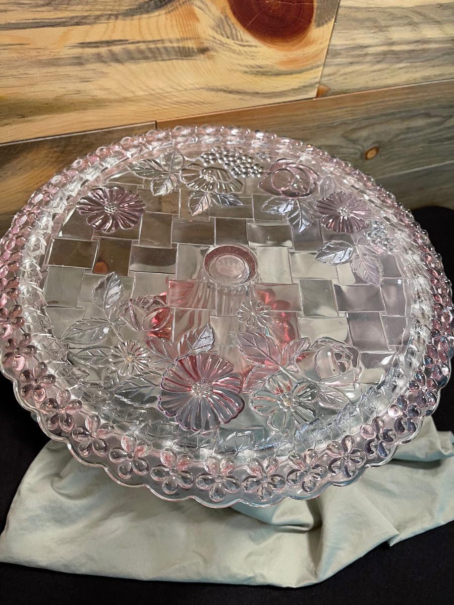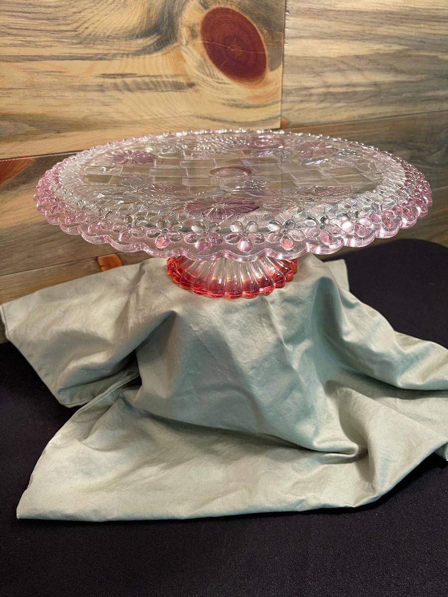 #8 Pink Glass Cake Platter Stand