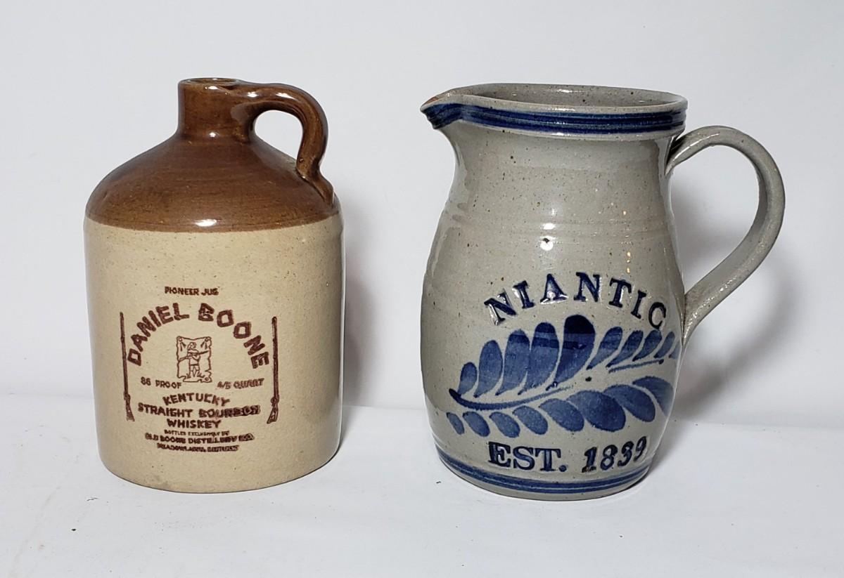 1 Daniel Boone jug & 1 Niantic pitcher, signed.