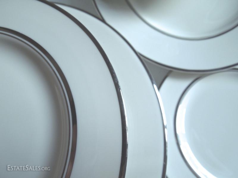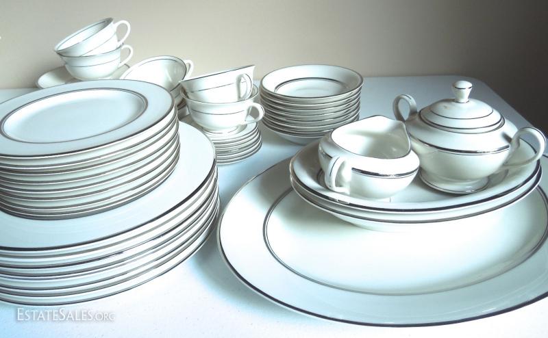 8 Place Setting Nancy Prentiss Formal China "Silver Sonnet" w/Serving Pieces