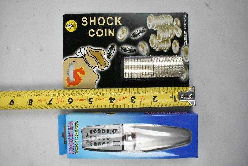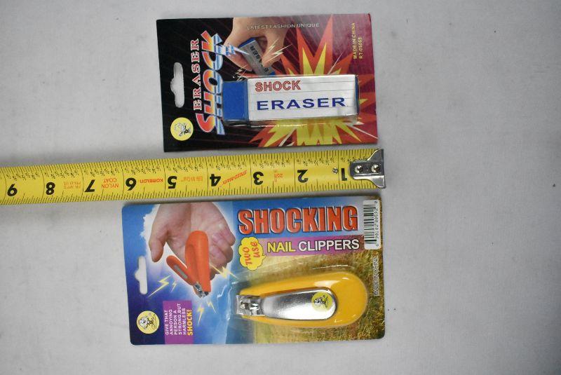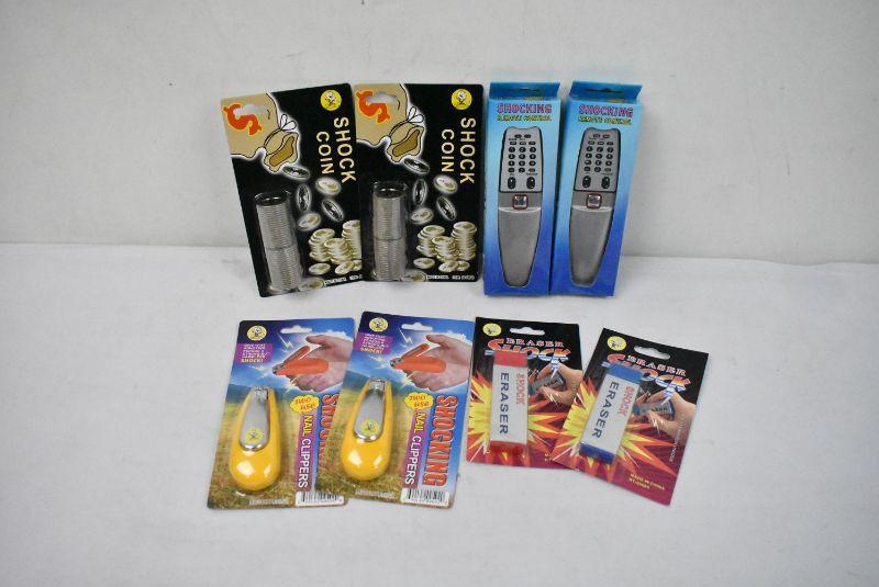 8 Practical Joke Shocking Toys: 2 Remotes, 2 Coin Sets, 2 Nail Clippers, 2 Erasers - New