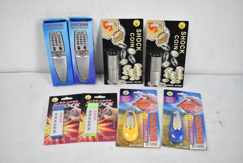 8 Practical Joke Shocking Toys: 2 Remotes, 2 Coin Sets, 2 Erasers, and 2 Nail Clippers - New