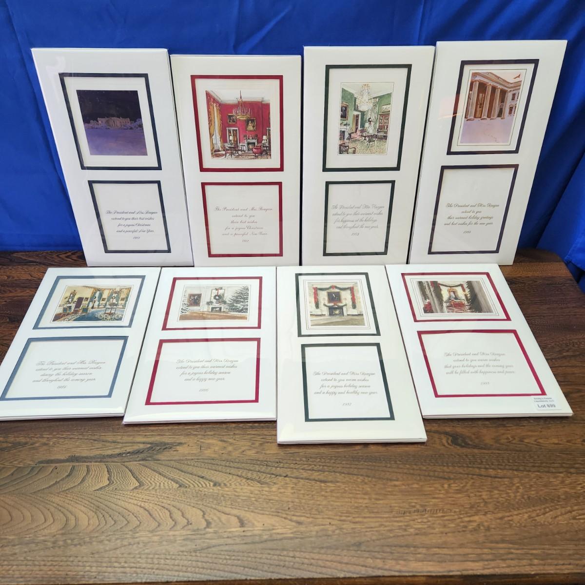 8 President Mrs. Reagan Holiday Cards 1981-1988 Matted Unframed