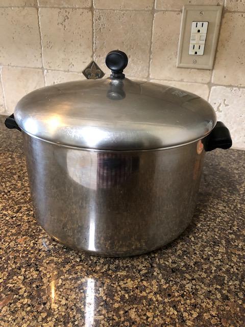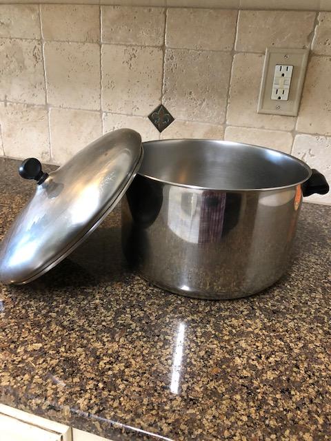 Pot is 10 1/4” wide and 6 1/4” deep. Handles in great shape. No wobbles. $12