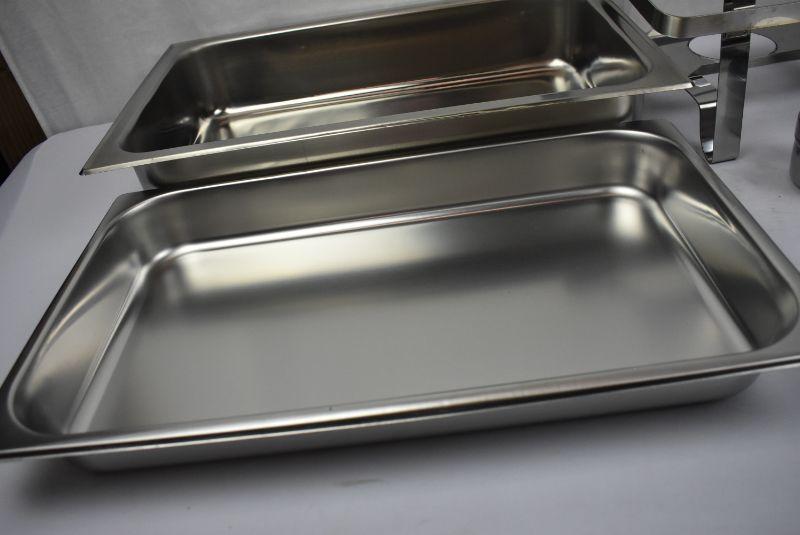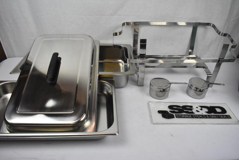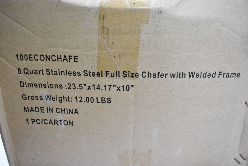 8 Qt Stainless Steel Full Size Chafer Set. Needs Welding Repaired, otherwise new