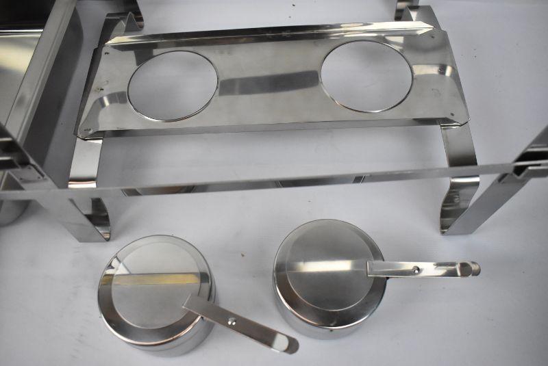 8 Quart Stainless Steel Full Size Chafer Set with Welded Frame. Needs Welding Repaired, otherwise new