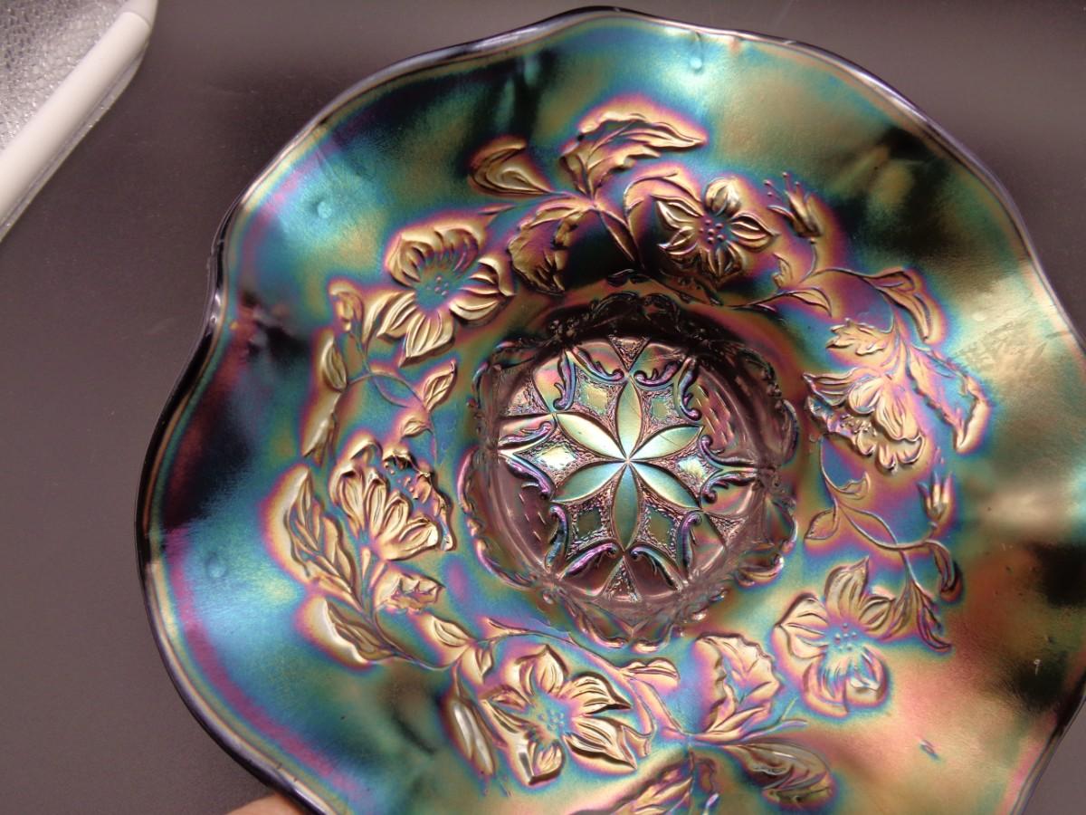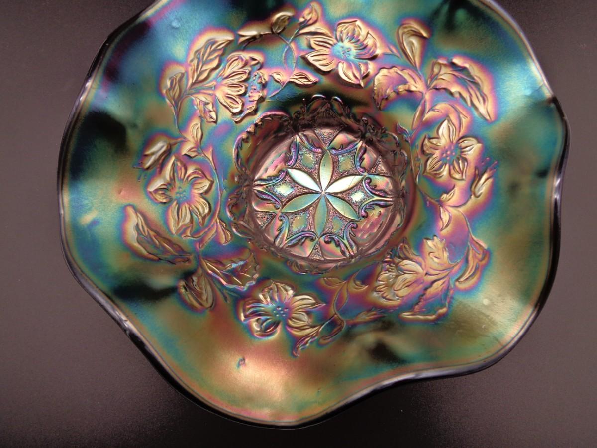 8" Rare Purple Carnival Dugan "Six Petals" Bowl #22