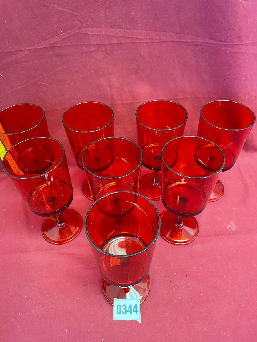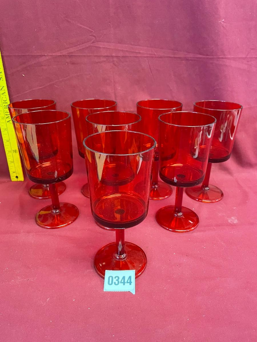 8 red plastic stemware