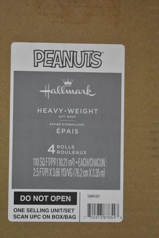 2 Boxes Hallmark Holiday Wrapping Paper Bundle with Cut Lines on Reverse, Peanuts (Pack of 4, 110 sq. ft. ttl.) 8 rolls total - New
