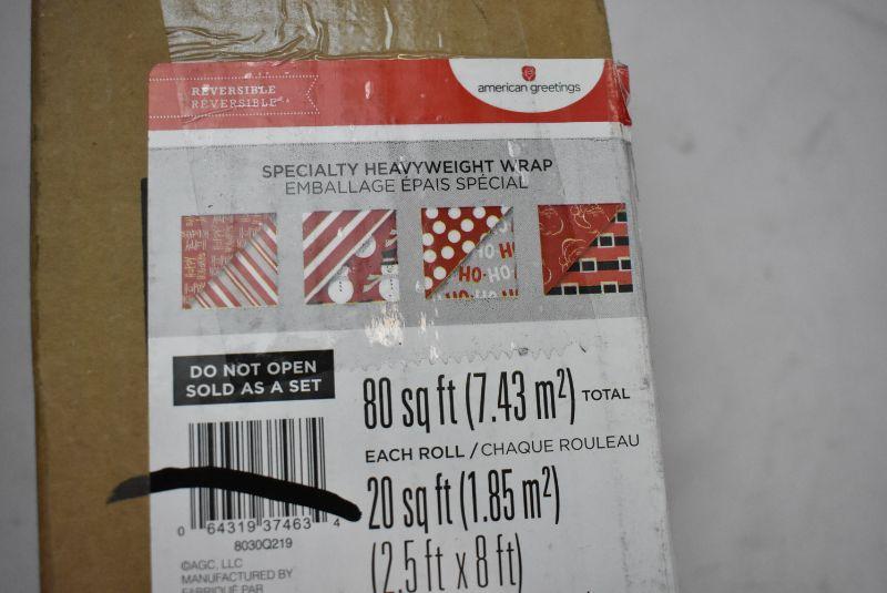 2 Boxes American Greetings Christmas Foil Reversible Coordinating Wrapping Paper, Red/B&W/Silver/Black, 4 rolls in each box = 8 rolls total - New