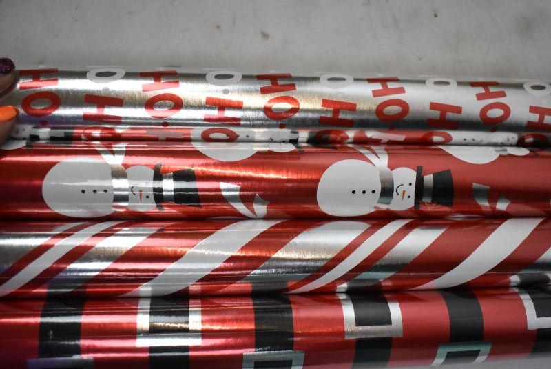 8 Rolls Red/B&W/SIlver American Greetings Foil Reversible Wrapping Paper - New