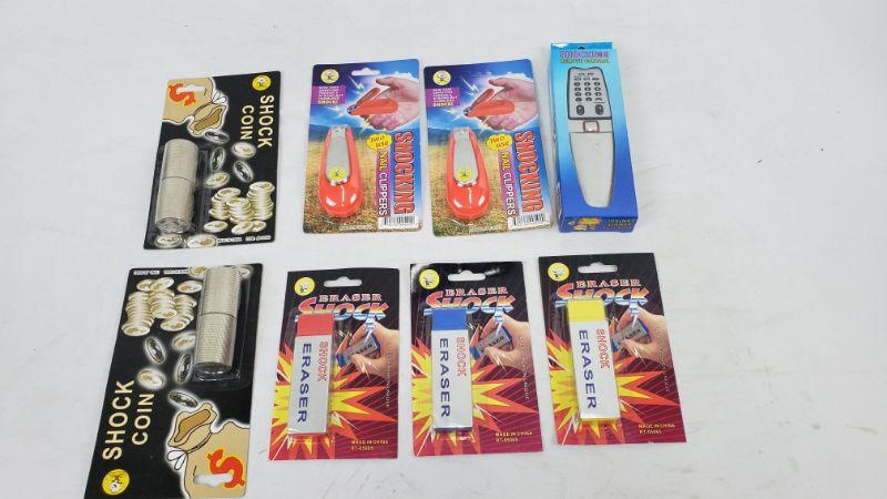 8 Shocking Gag Toys: 2 Shock Coin, 3 Eraser Shock, 2 Shocking Nail Clippers & 1 Shocking Remote Control - New