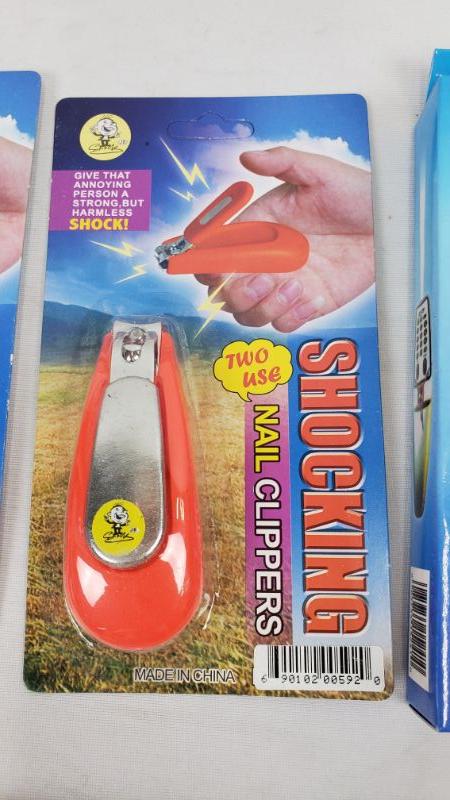 8 Shocking Gag Toys: Coin, Eraser, Nail Clippers & Remote Control - New
