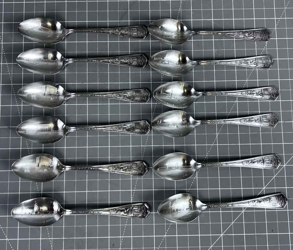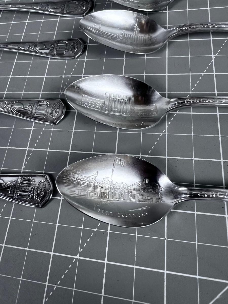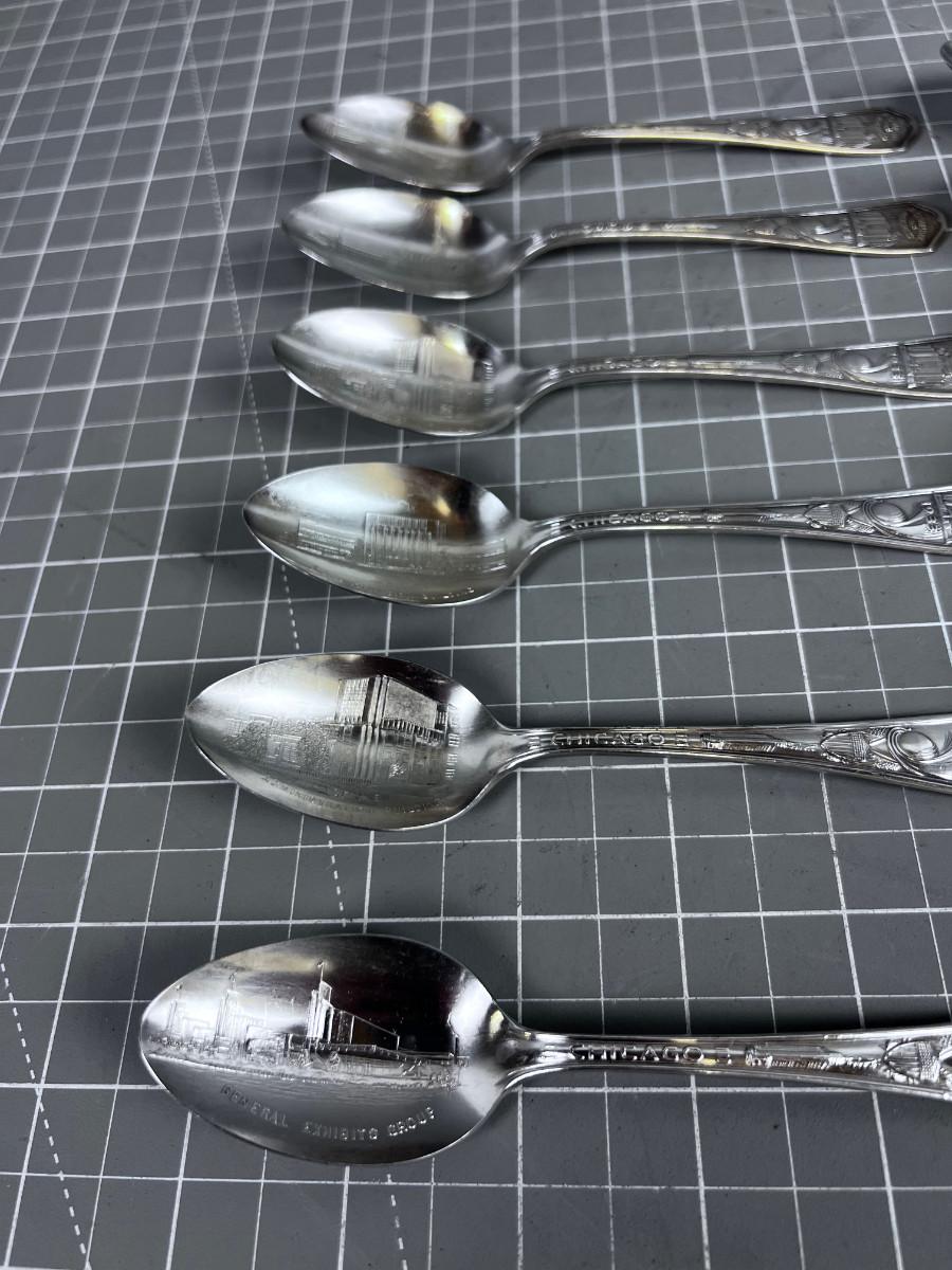 8 Spoon Set from the Worlds Fair 1933, Various Exhibits in the Spoons