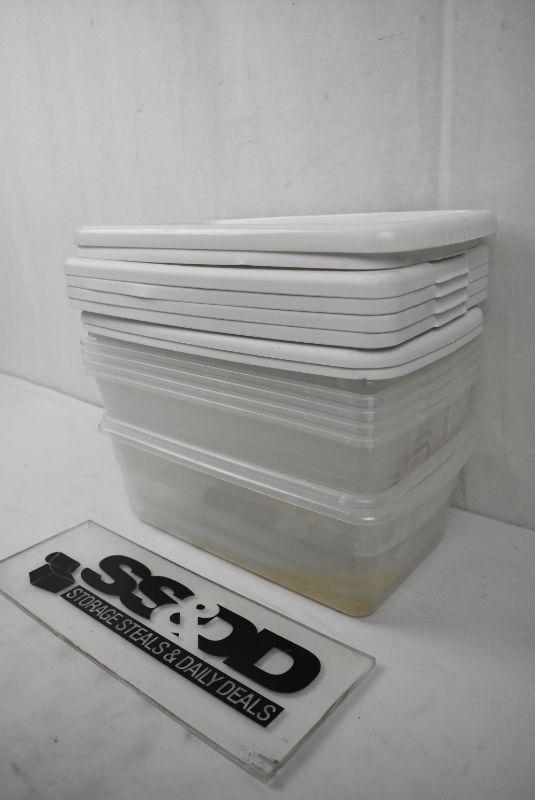 8 Sterilite Boxes, Shoebox Size, Clear with White Lids