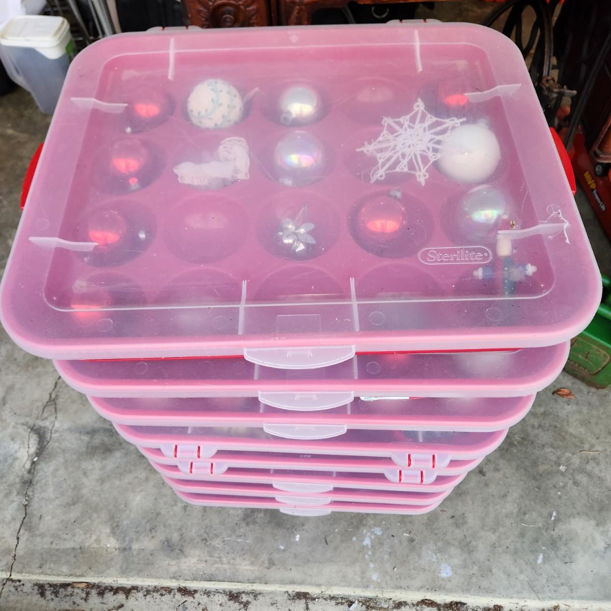 8 Sterilite Christmas Ornaments Cases Storage Containers with Ornaments.