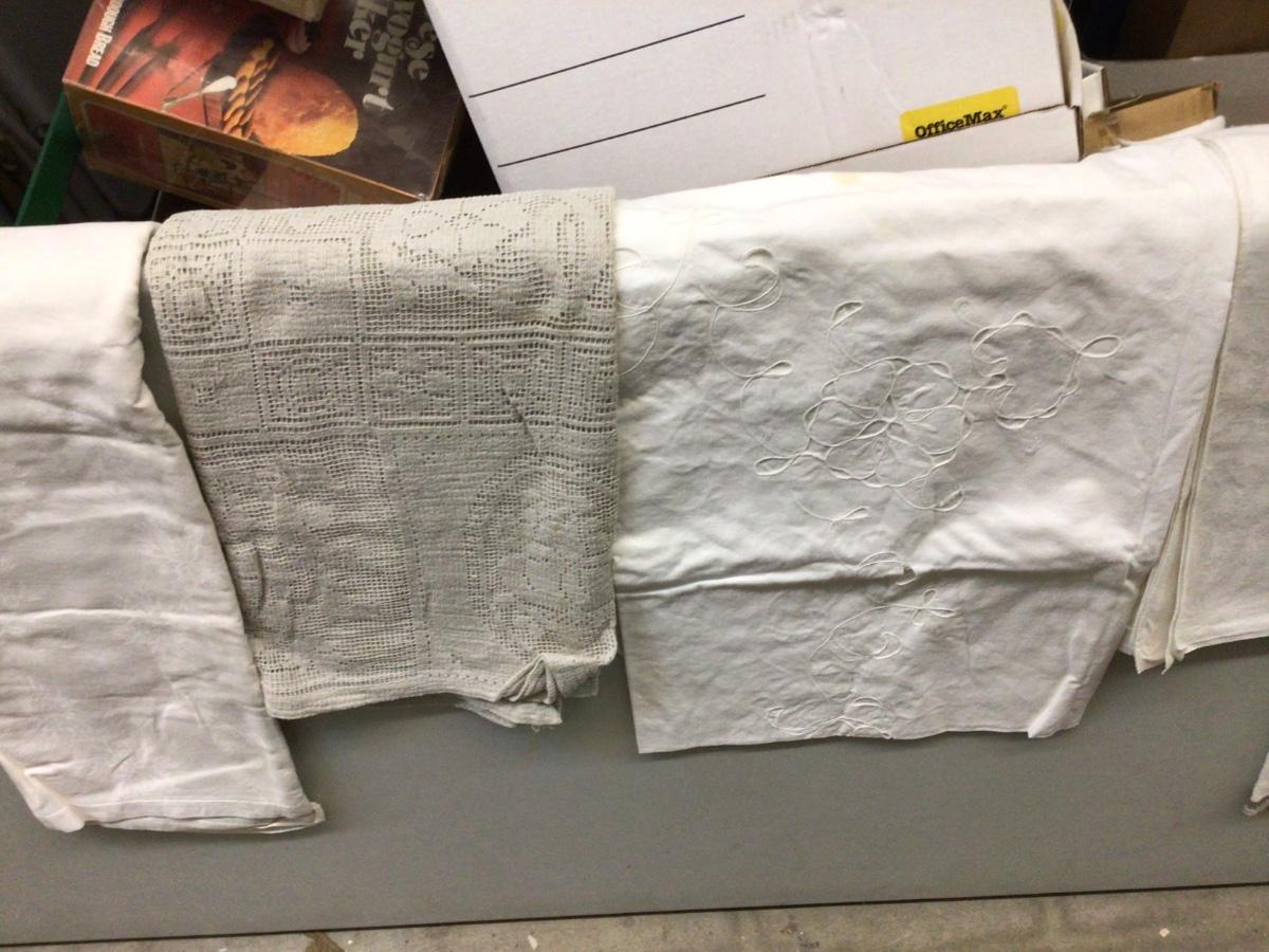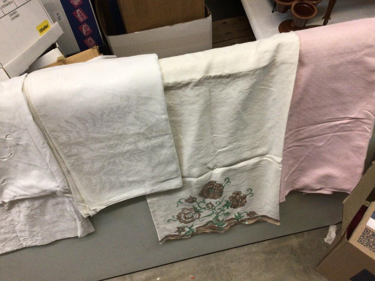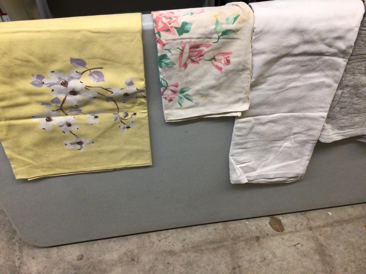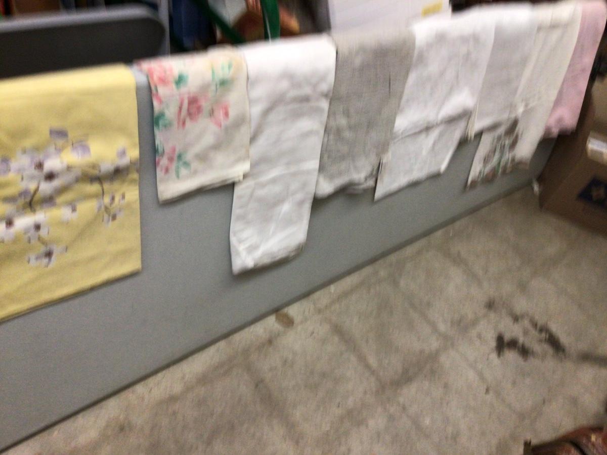 You get 8 tables clothes, various sizes and colors. Some staining.