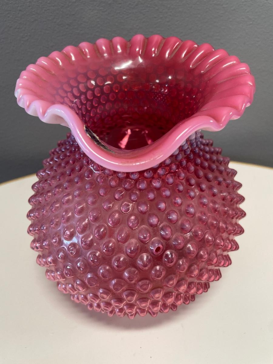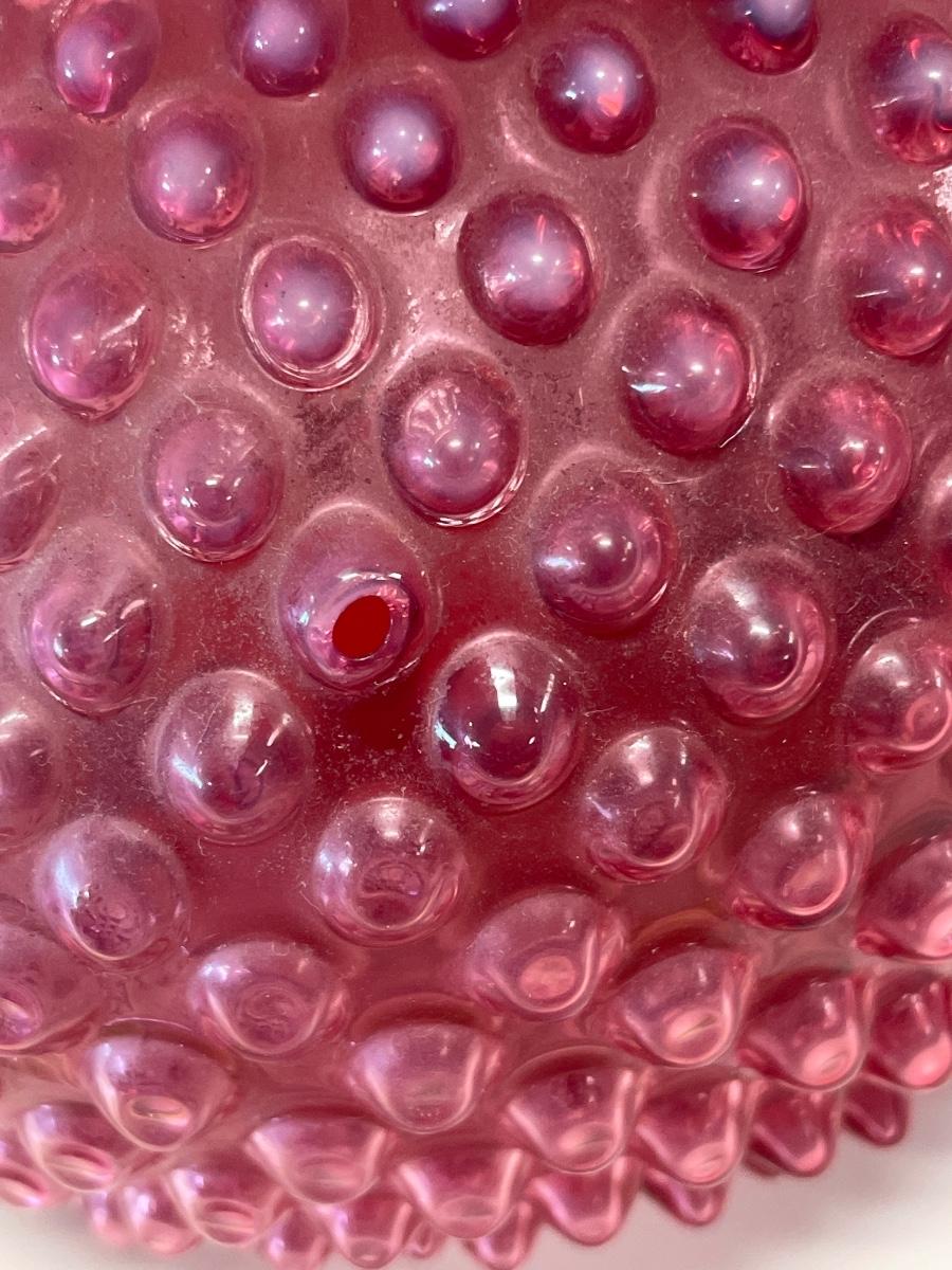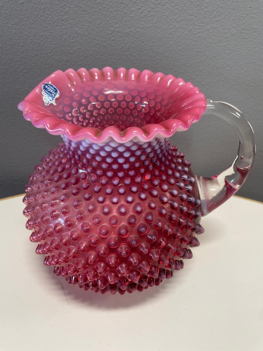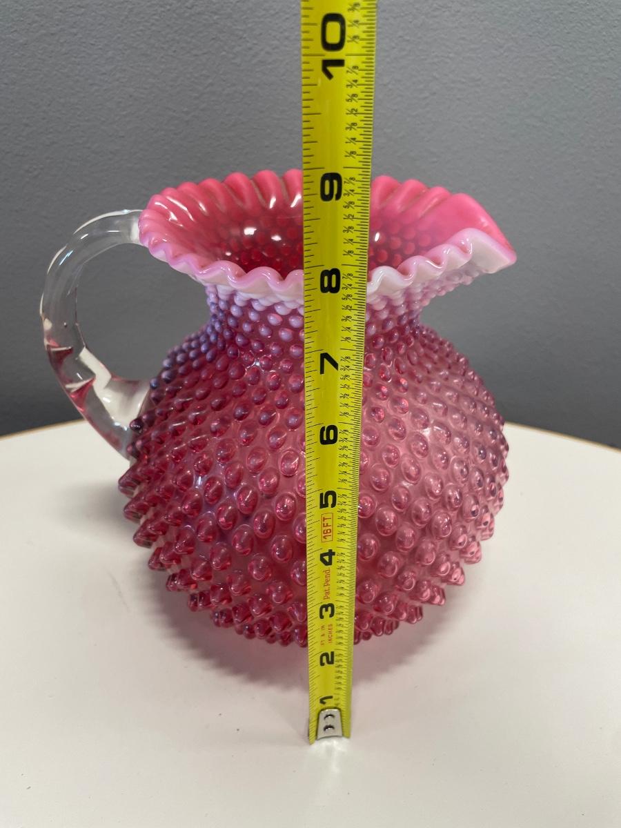8” tall Fenton cranberry hobnail pitcher