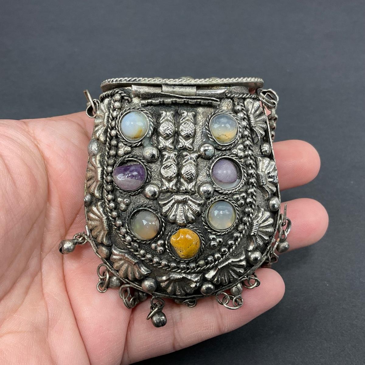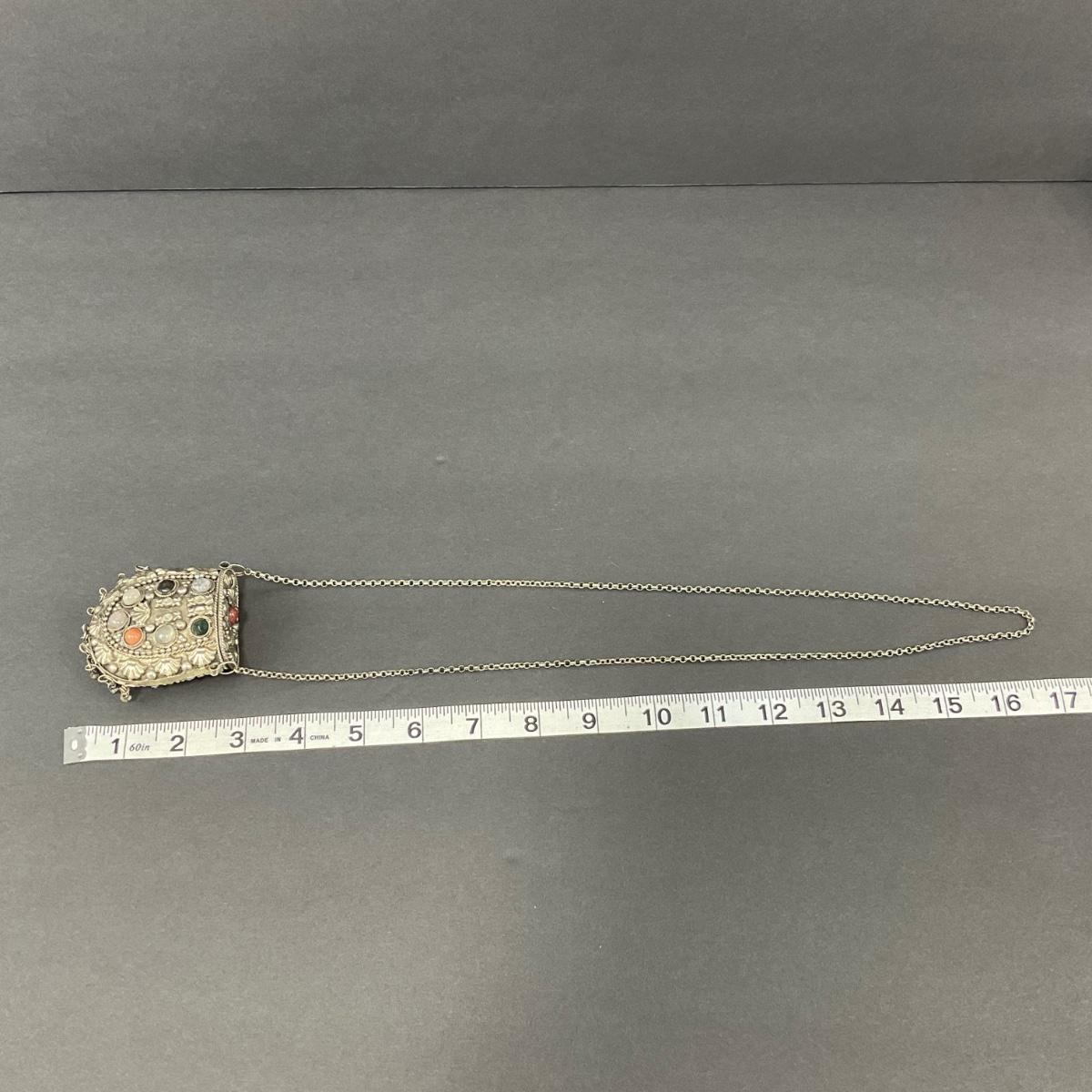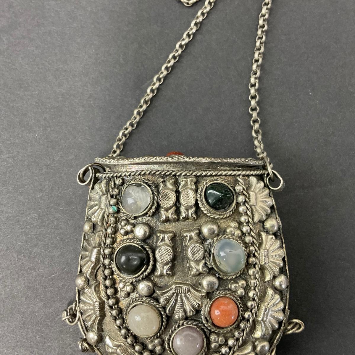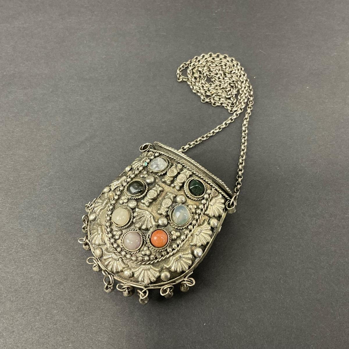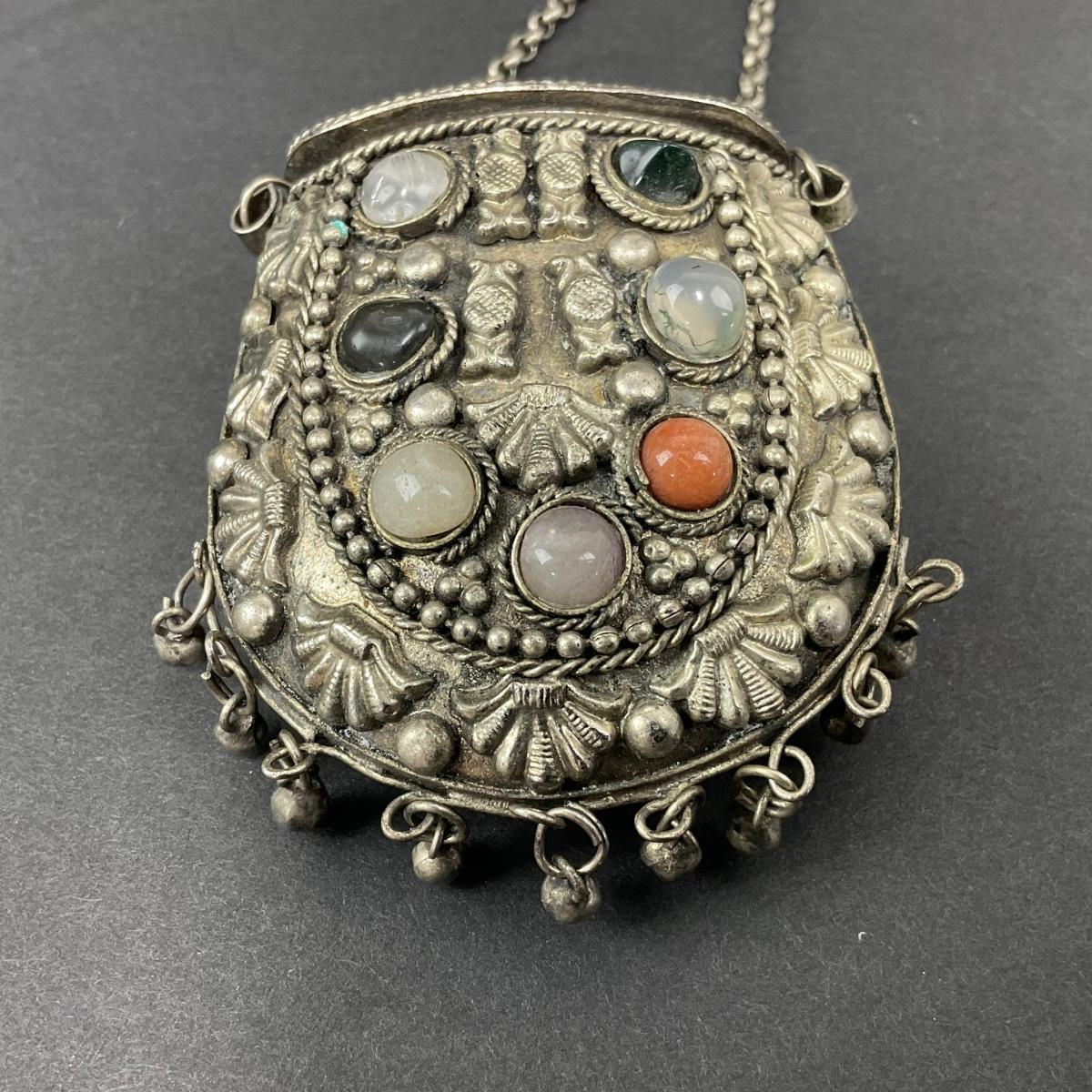 -8- TIBETAN | 1960’s Mini Sajai Tibetan Metal & Polished Stones Purse