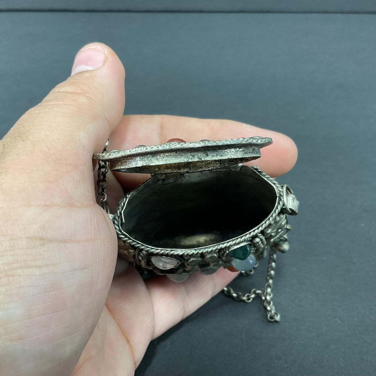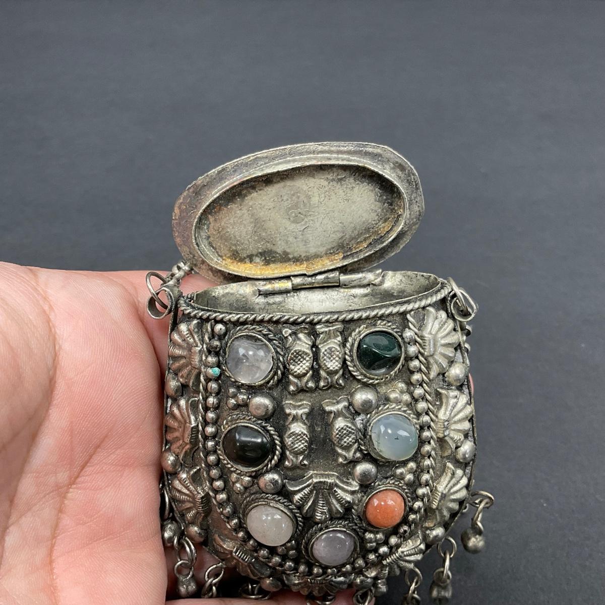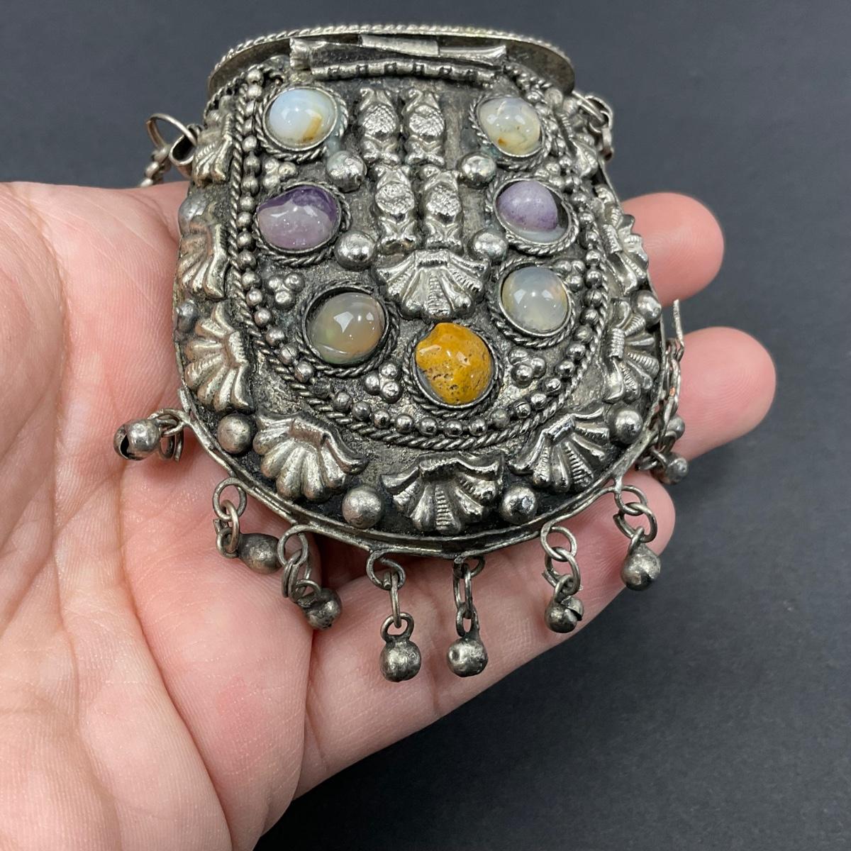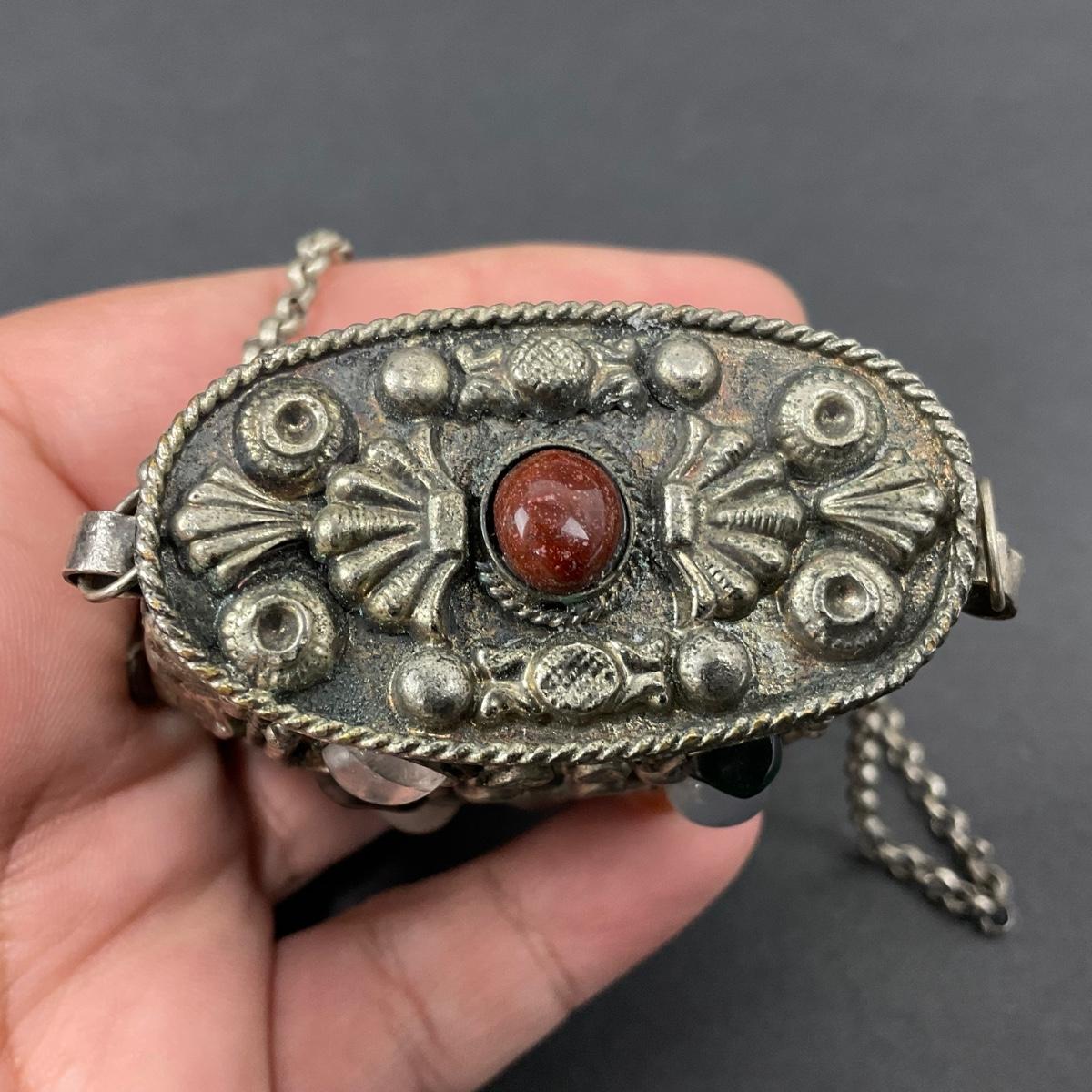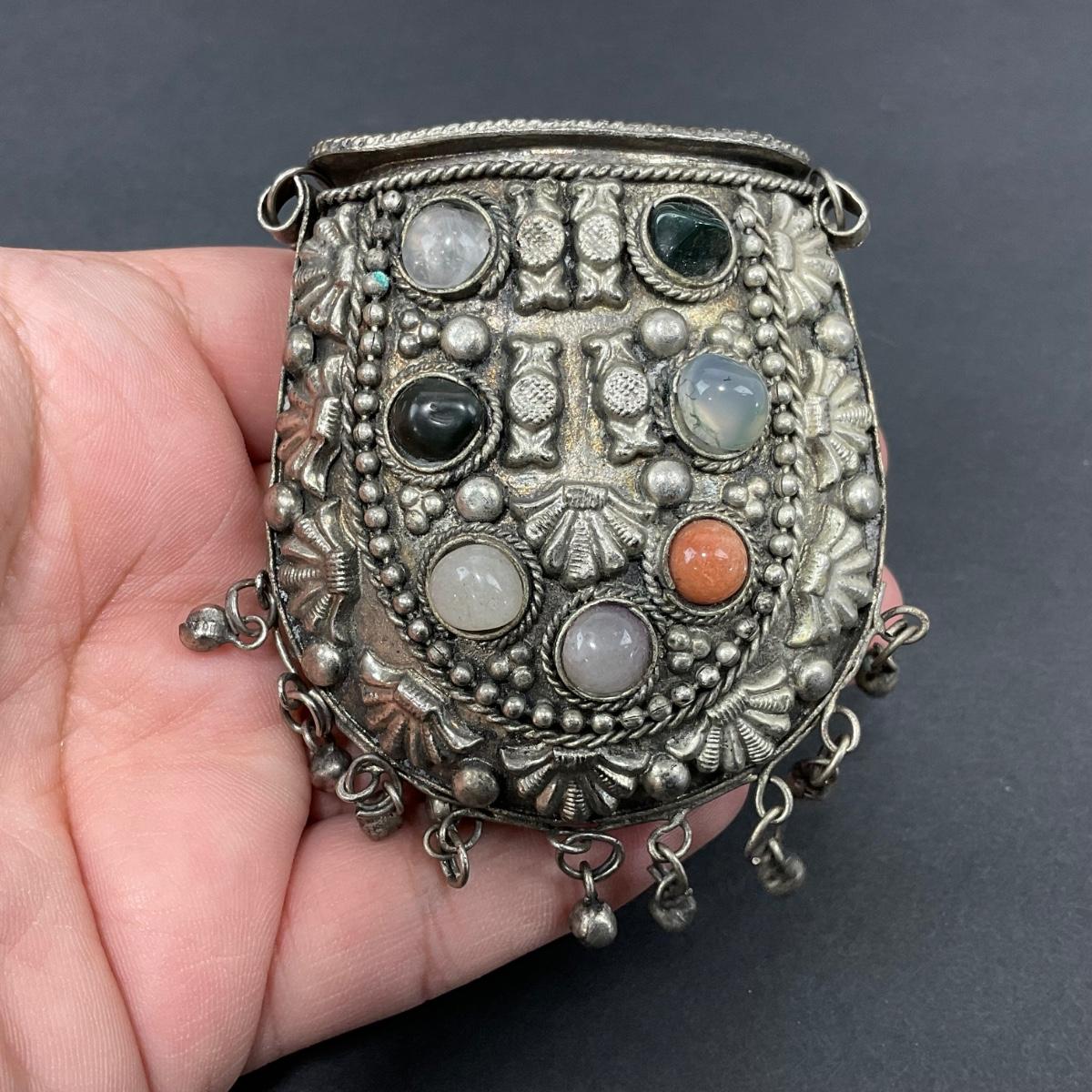 -8- TIBETAN | 1960’s Mini Sajai Tibetan Metal & Polished Stones Purse