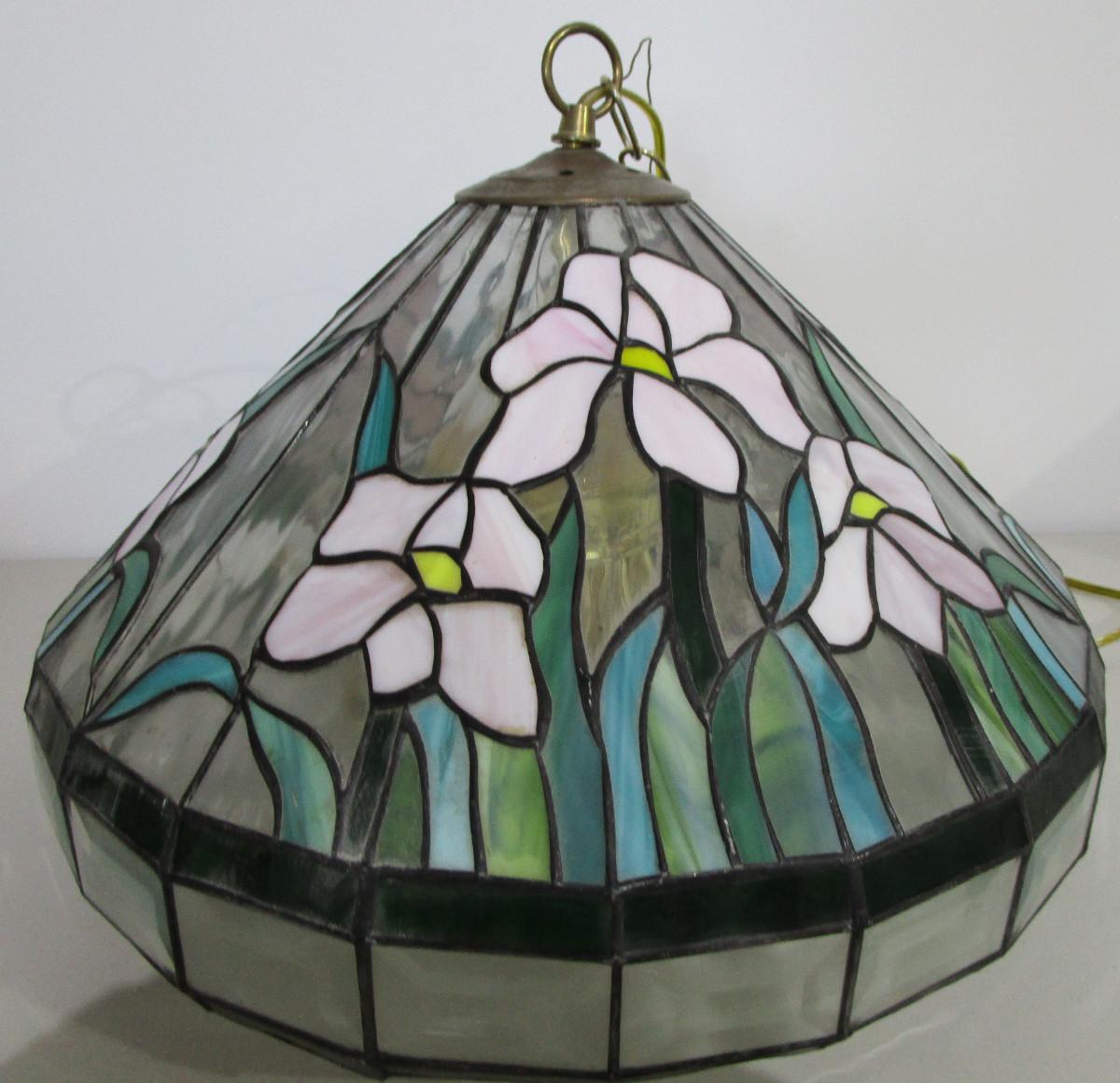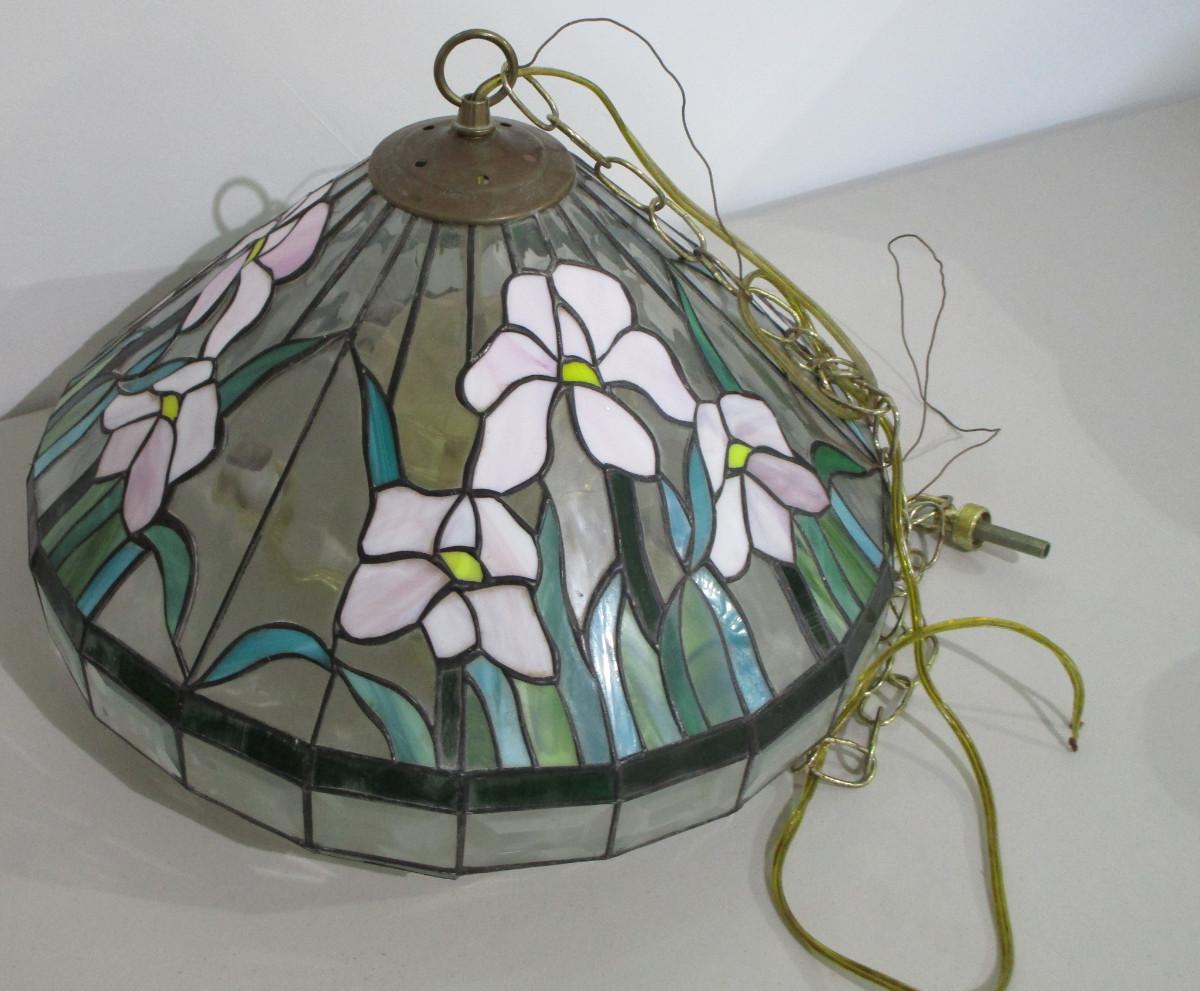 Tiffany style hanging lamp, 17" around, 12" high,missing plug