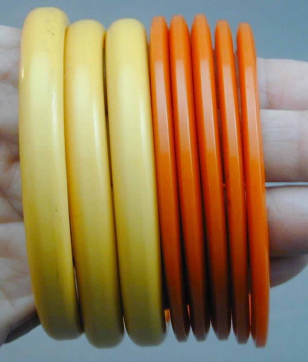 8 Vintage Bakelite Bangle Bracelets Orange & Butterscotch