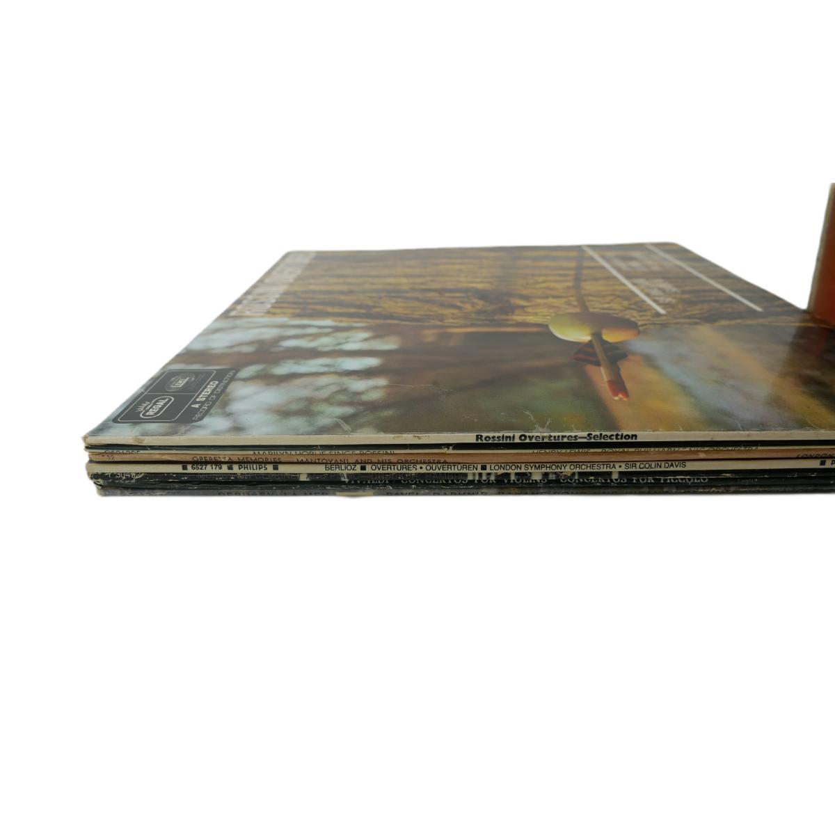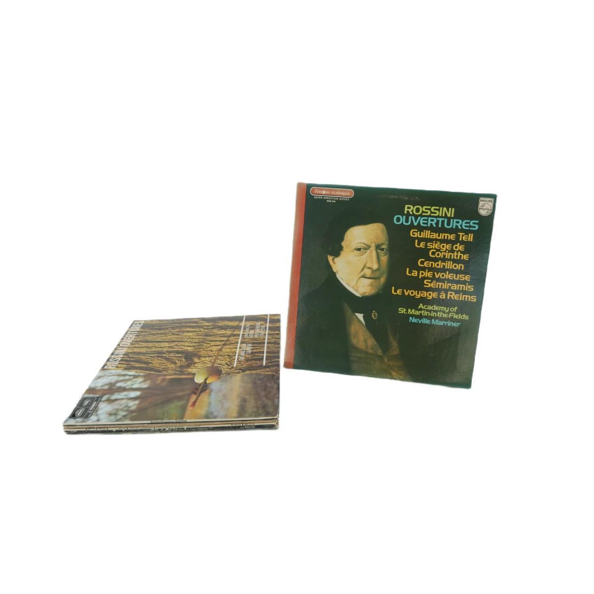 Lot of 8 vintage Classical and Opera music records including: Rossini Overtures - Academy of St. Martins in the Fields/Neville Marriner, Rossini Overtures - Sir Malcolm Sargent Conducting the Vienna Philharmonic Orchestra, Marilyn Horne Signs Rossini - Royal Philharmonic Orchestra/Harry Lewis, Operetta Memories - Mantovani and His Orchestra, Berlioz Overtures - London Symphony Orchestra/Sir Colin Davis, Clarinet and Piano, Leonard Bernstein, Debussy,and more - Stanley Drucker and Leonid Hambro, Antonio Vivaldi - Chamber Orchestra of Sarre/Karl Ristenpart, and Debussy La Mer - George Szell and the Cleveland Orchestra. All in good condition. There may be some slight scracthes and wear to records and covers. Some sleeves may be missing. Lot weighs 5 lbs. (M46)