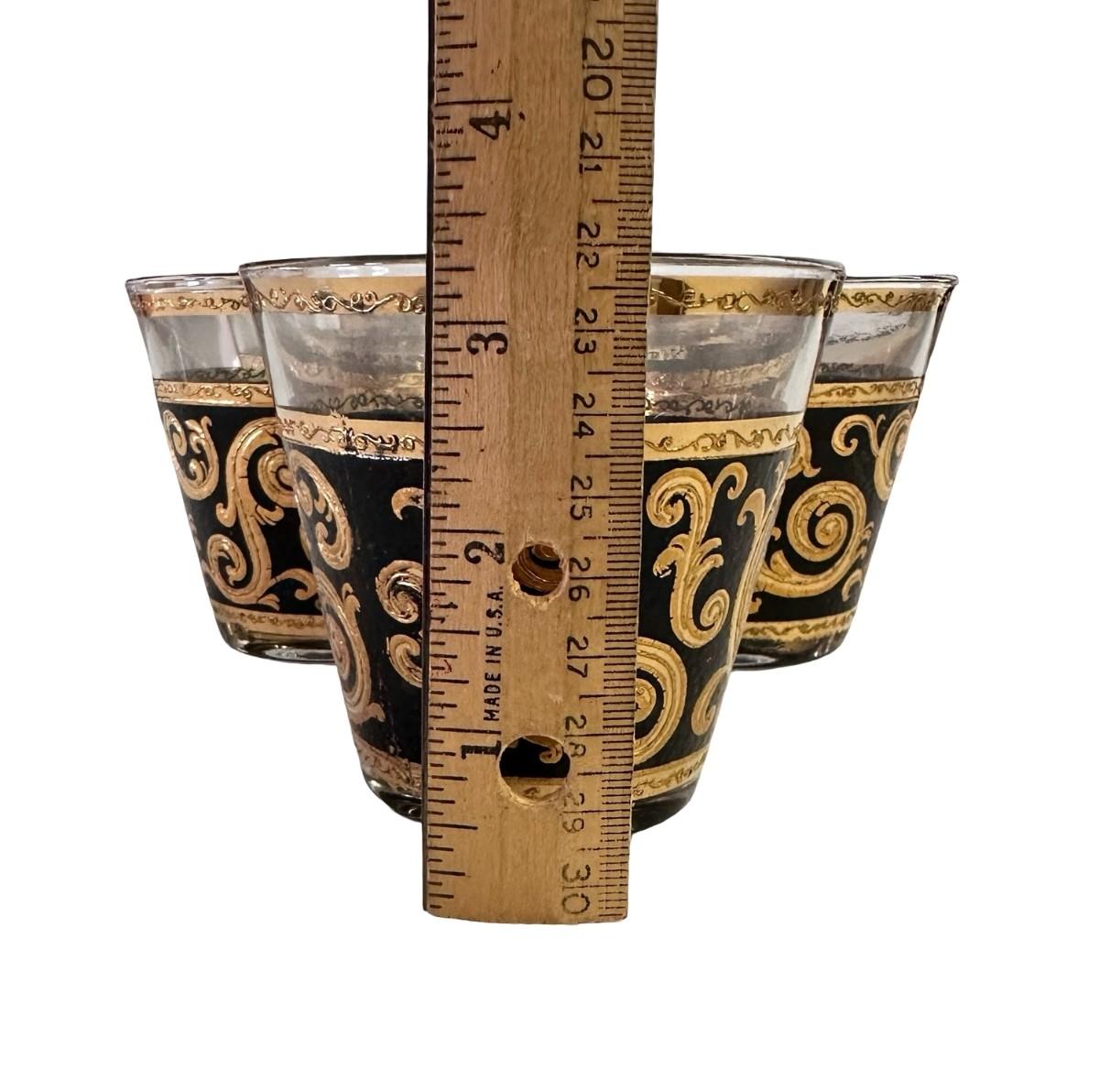8 Vintage Culver Black & Gold Scroll Lowball Tumblers /Glasses