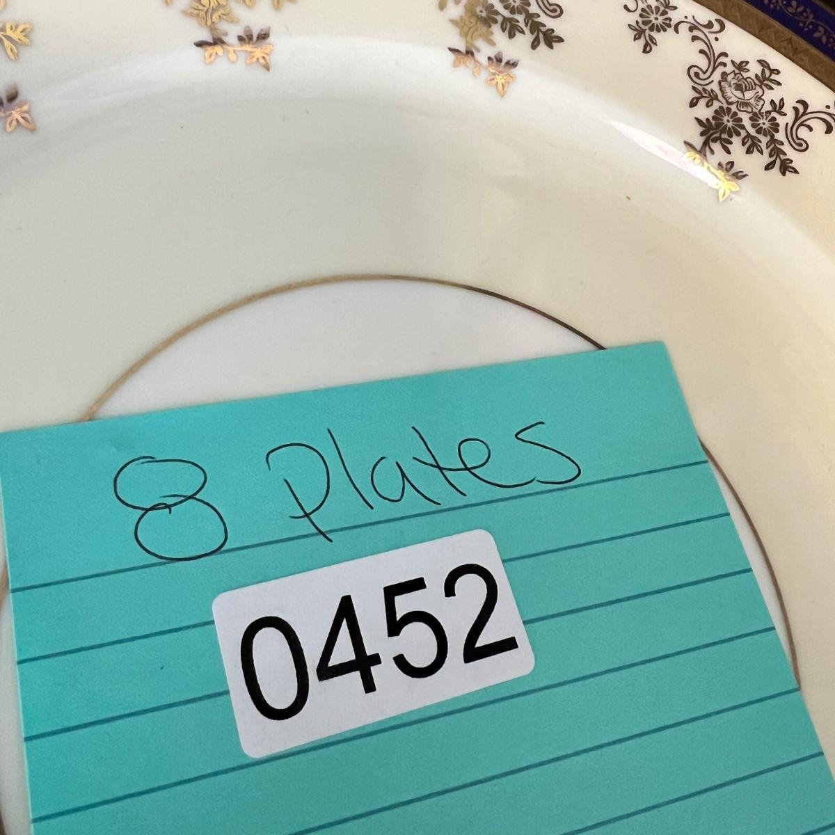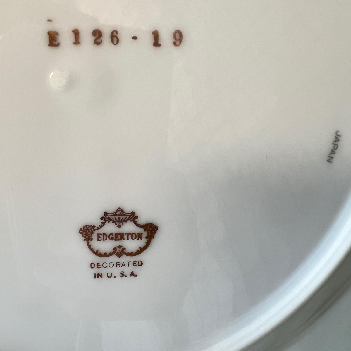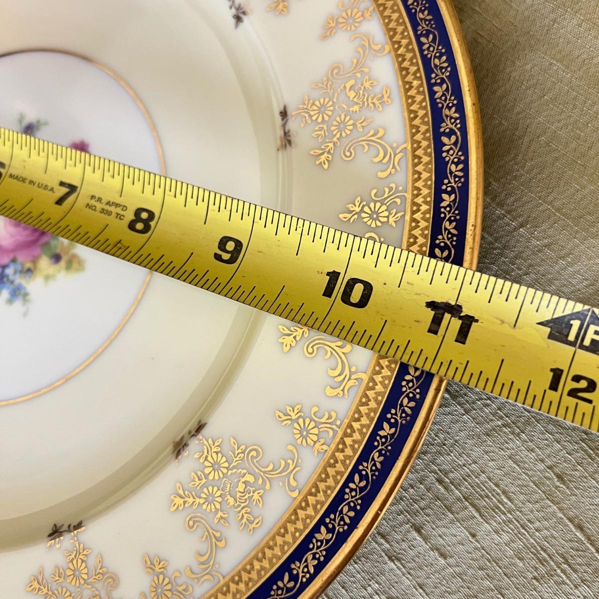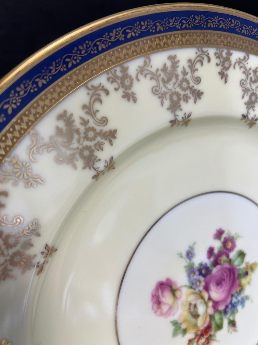 8 vintage Edgerton gold encrusted, blue band, floral center pattern E126-19. These plates are gorgeous! See second to last pic. Tiny chipped piece glued back on.