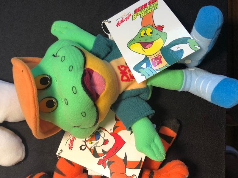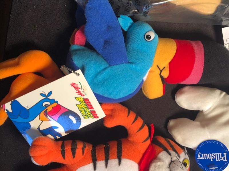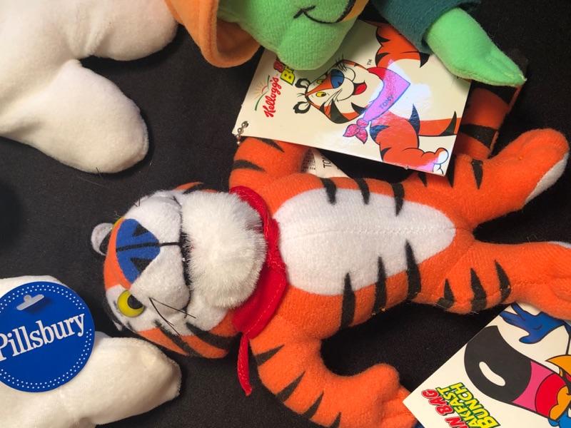 8 Vintage Food Themed Stuffed Animals - Mr Peanut, Tony The Tiger, Fruit Loop Toucan, Smacks Dig em, 3 smaller Pillsbury Doughboys, and 1 Large Pillsbury Doughboy