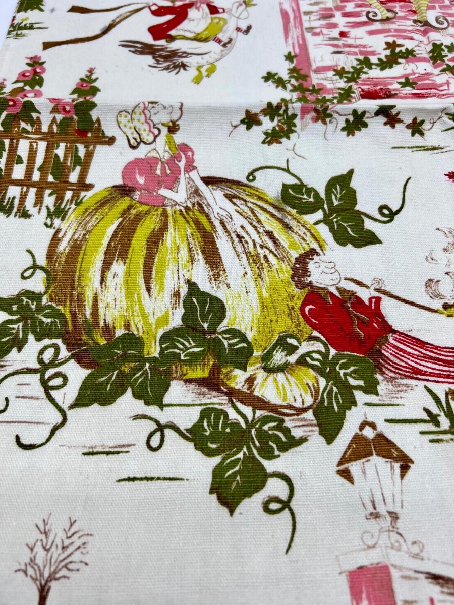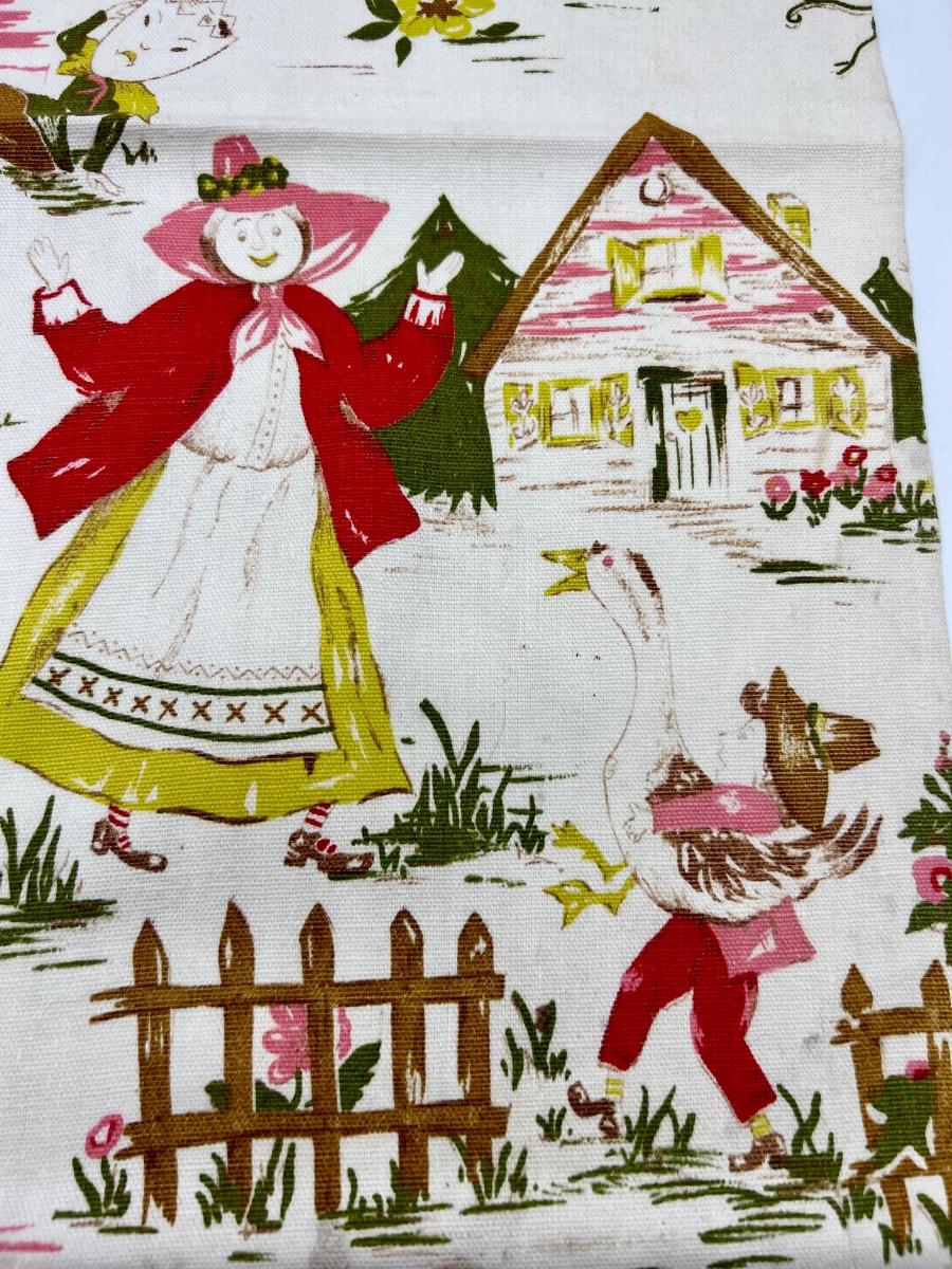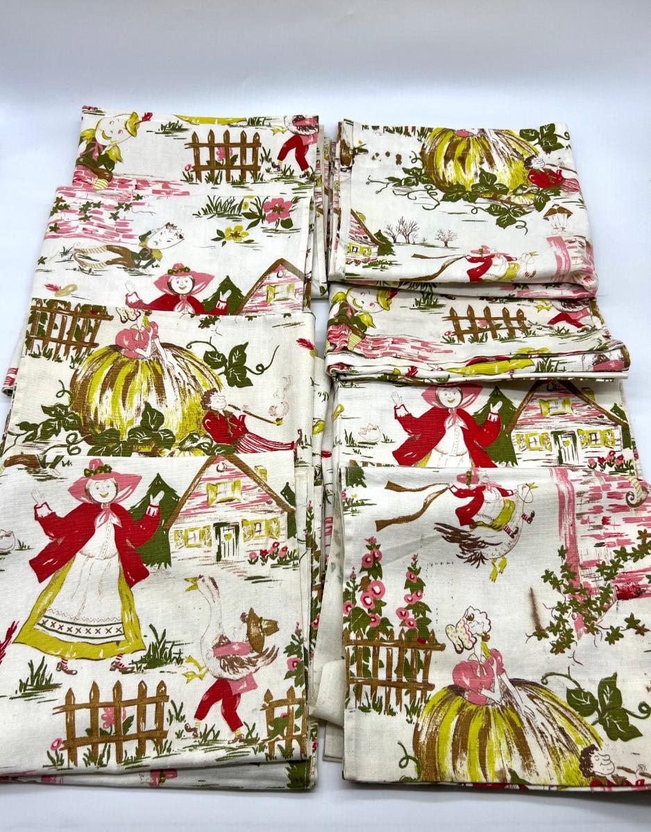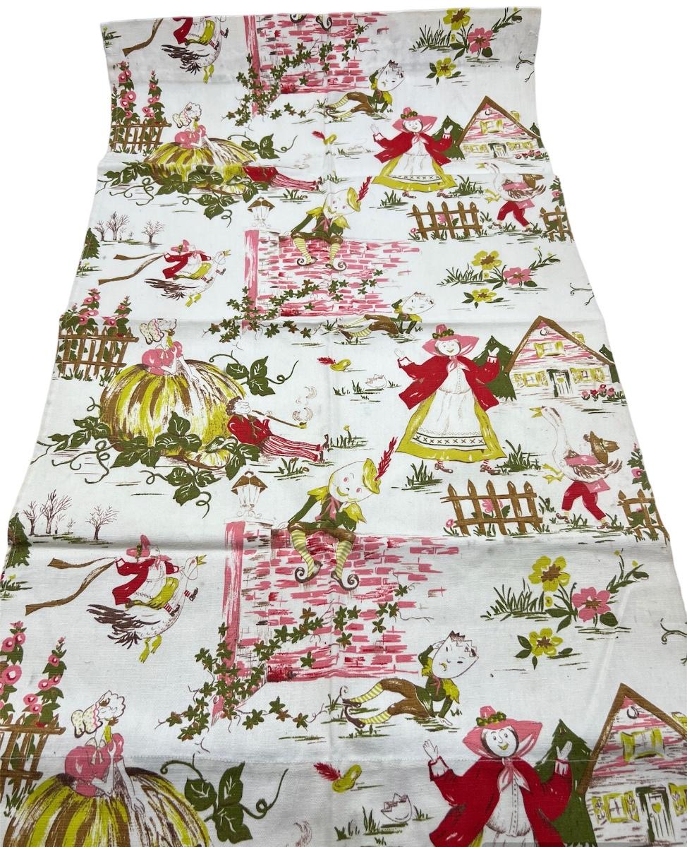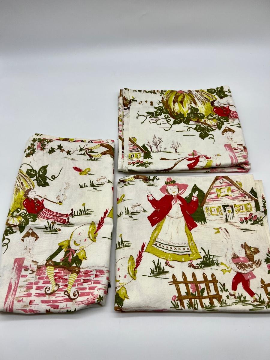 8 Vintage Nursery Rhymes Humpty Dumpty curtain valances. Each measures 38 inches long and 21 1/2 inches wide. Some may need to be spot cleaned.