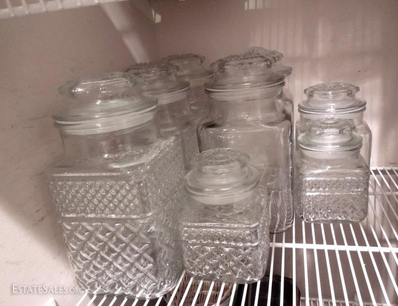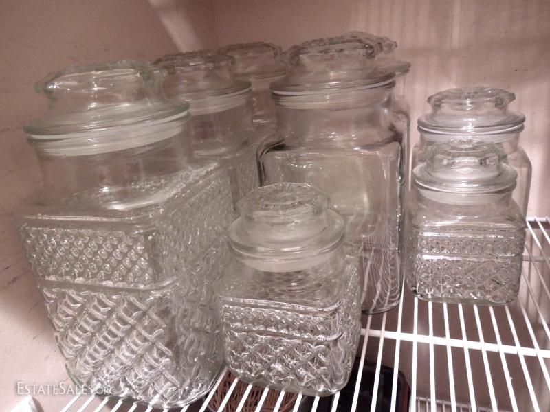 8 Vintage Pressed Glass Containers with Lid