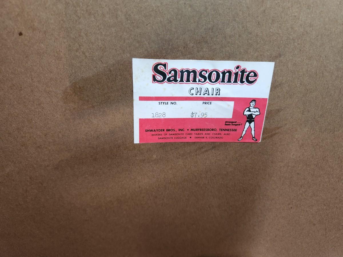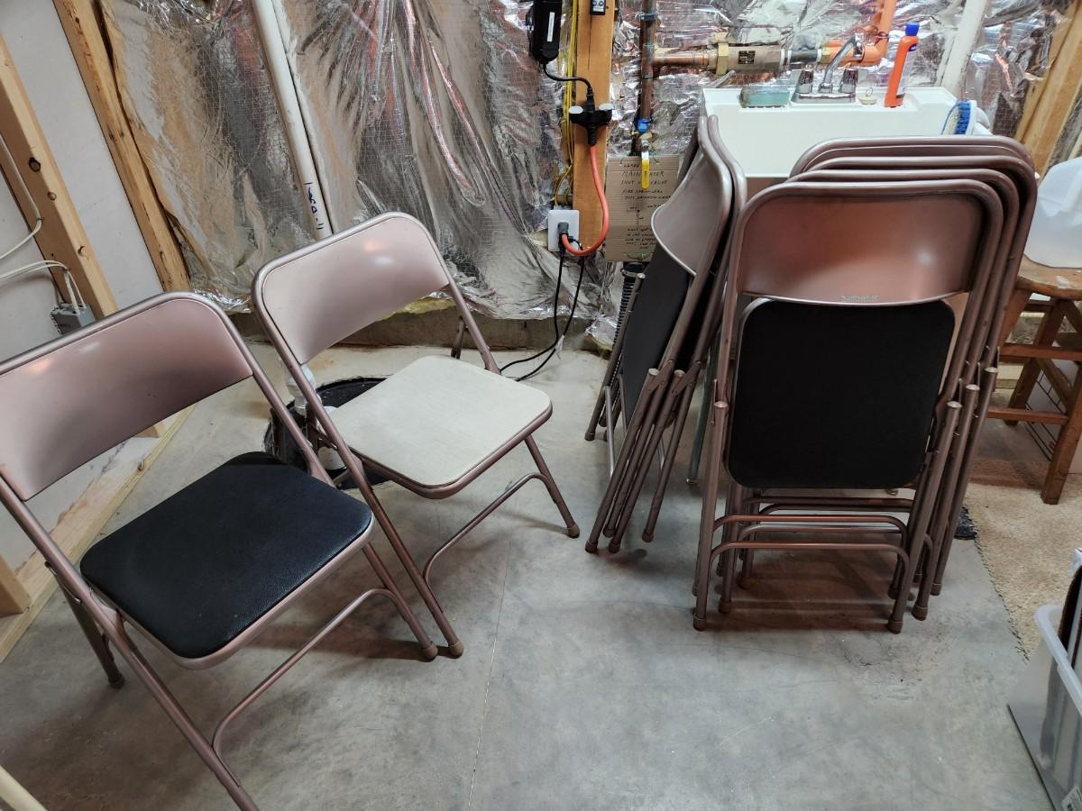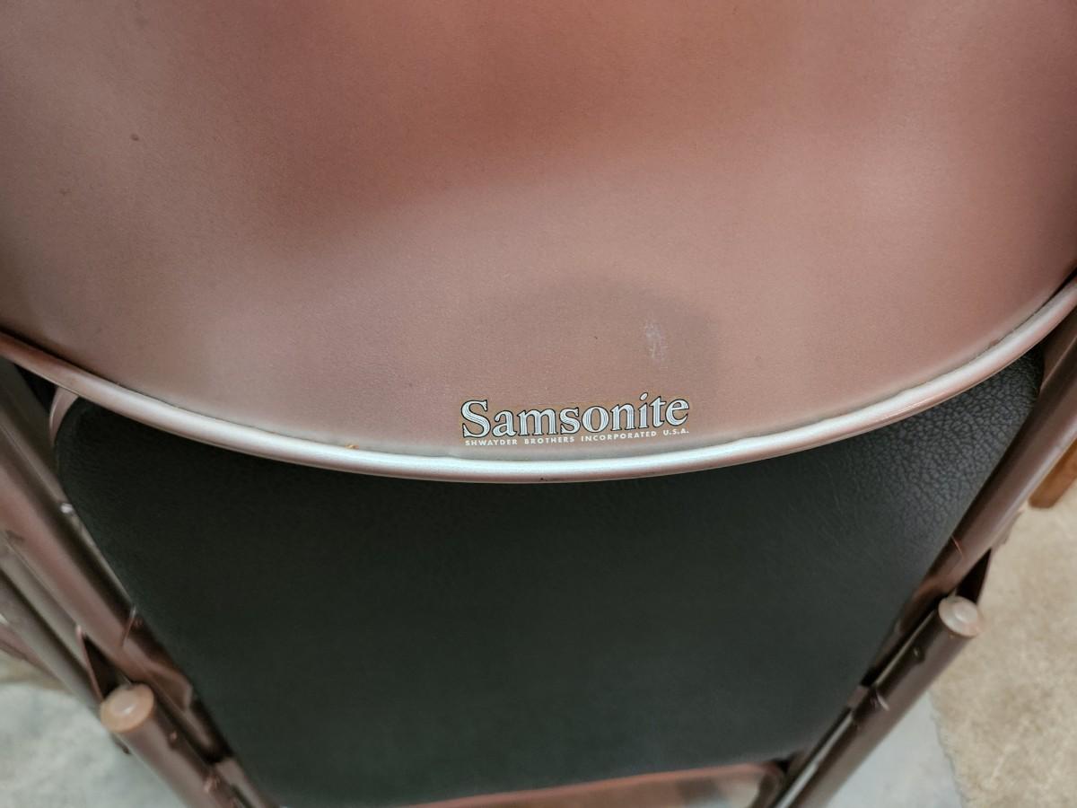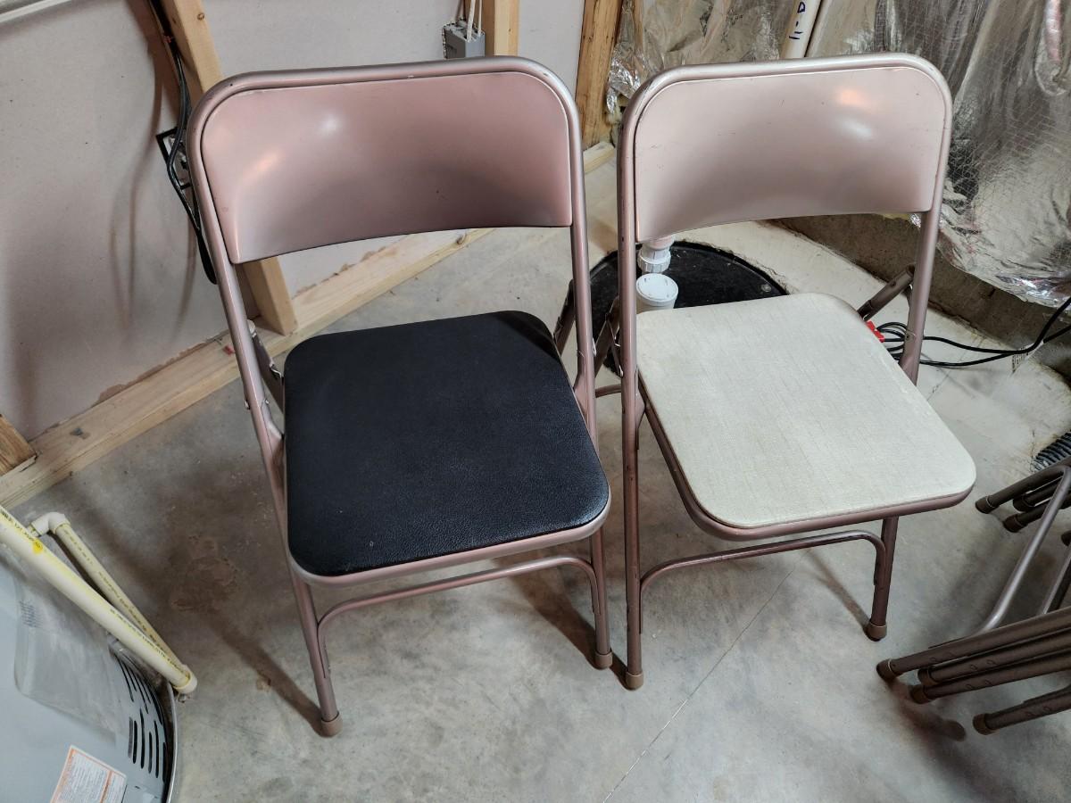 8 Vintage Samsonite Metal folding chairs with cushions 4 black 4 light