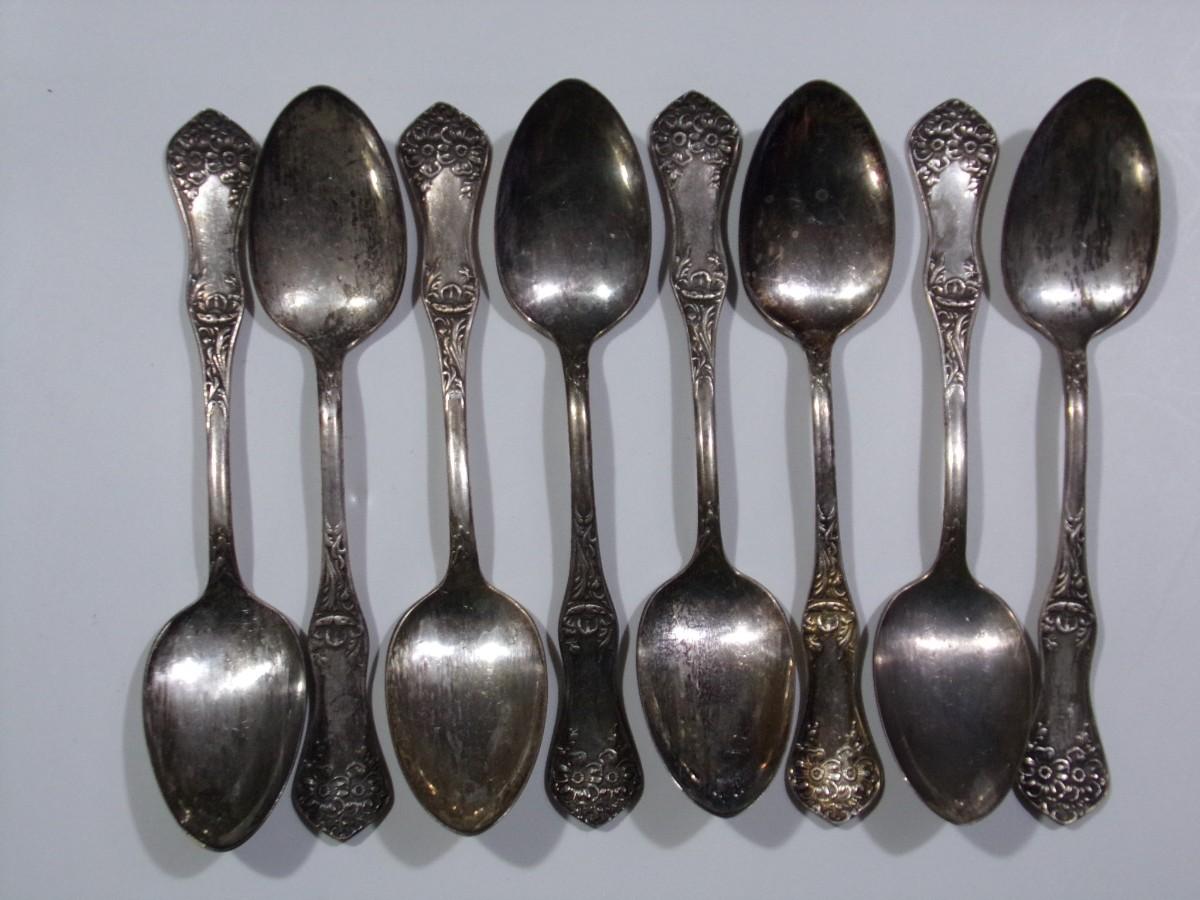 8 Wm Rogers & Son AA, silver plate, traditional tea spoons.